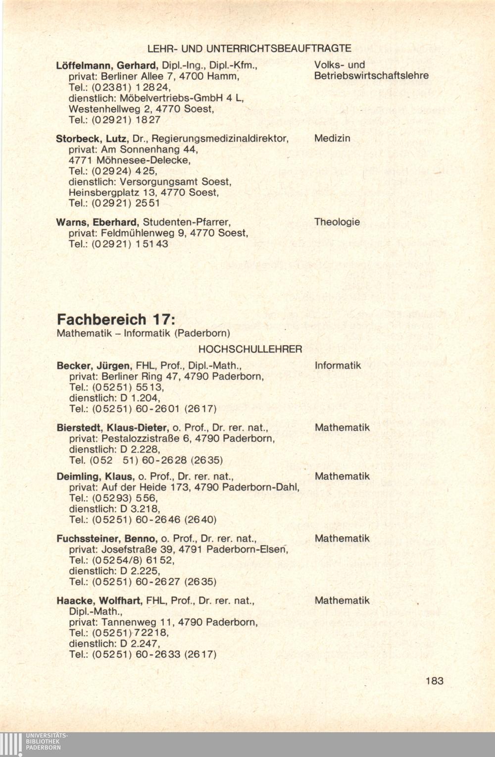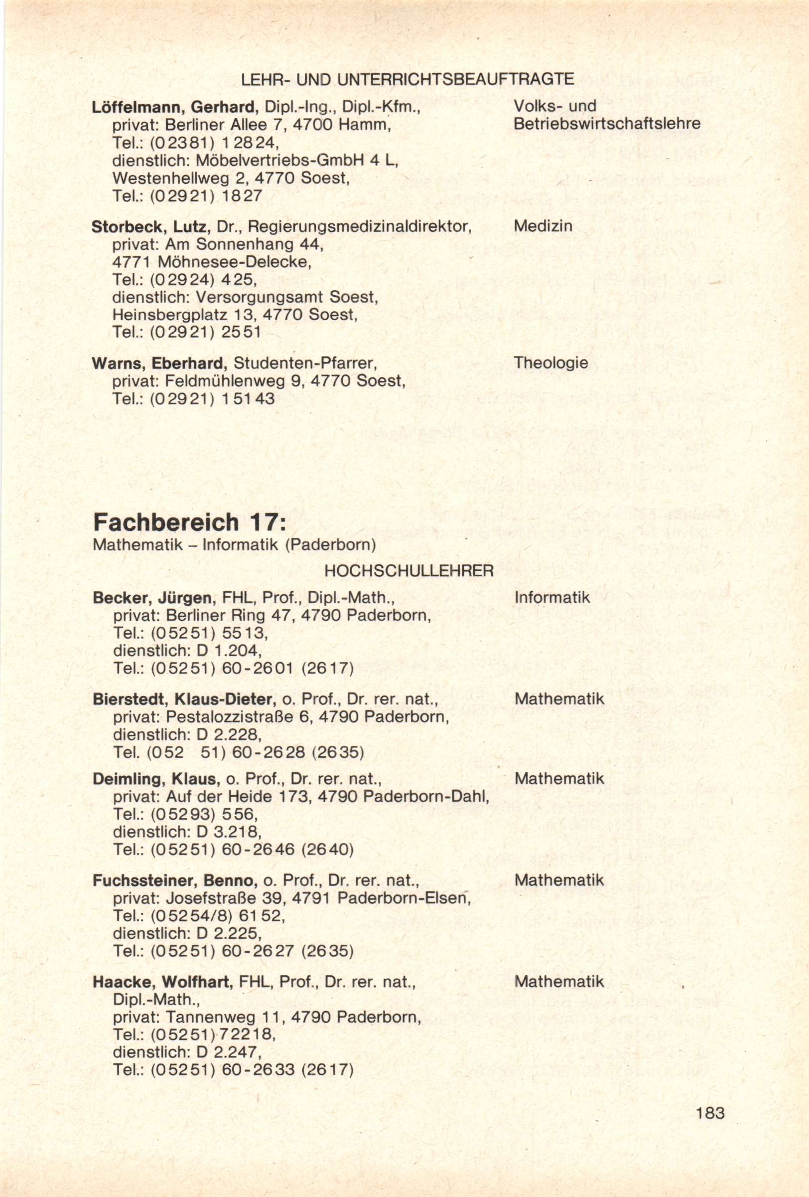 Personal- und Vorlesungsverzeichnis für die Gesamthochschule Paderborn
