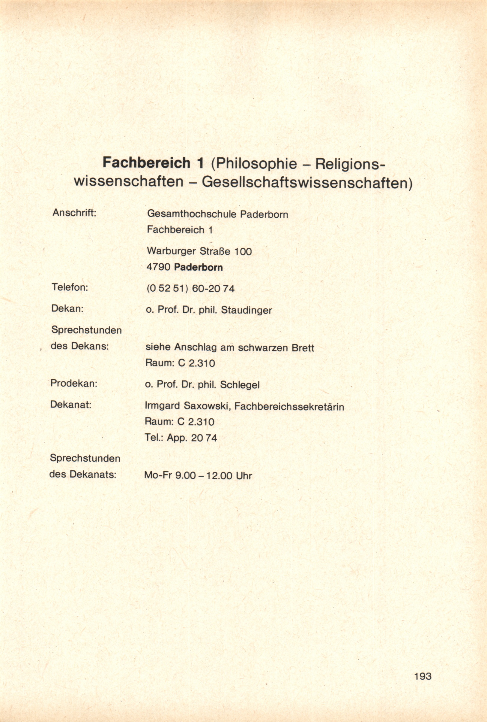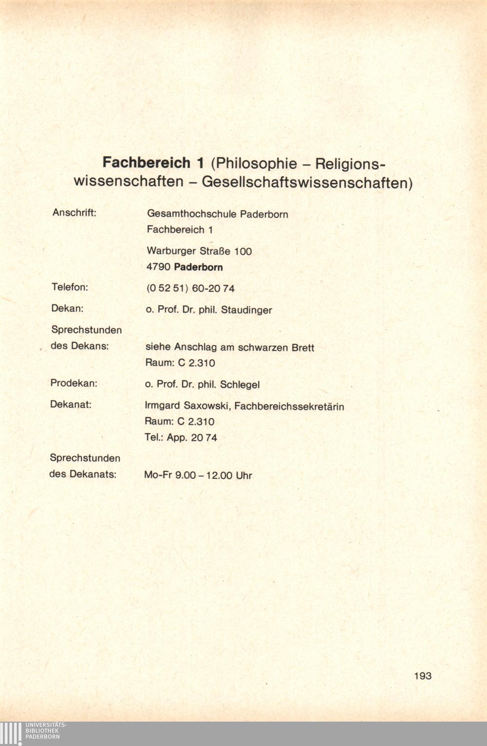 Personal- und Vorlesungsverzeichnis für die Gesamthochschule Paderborn