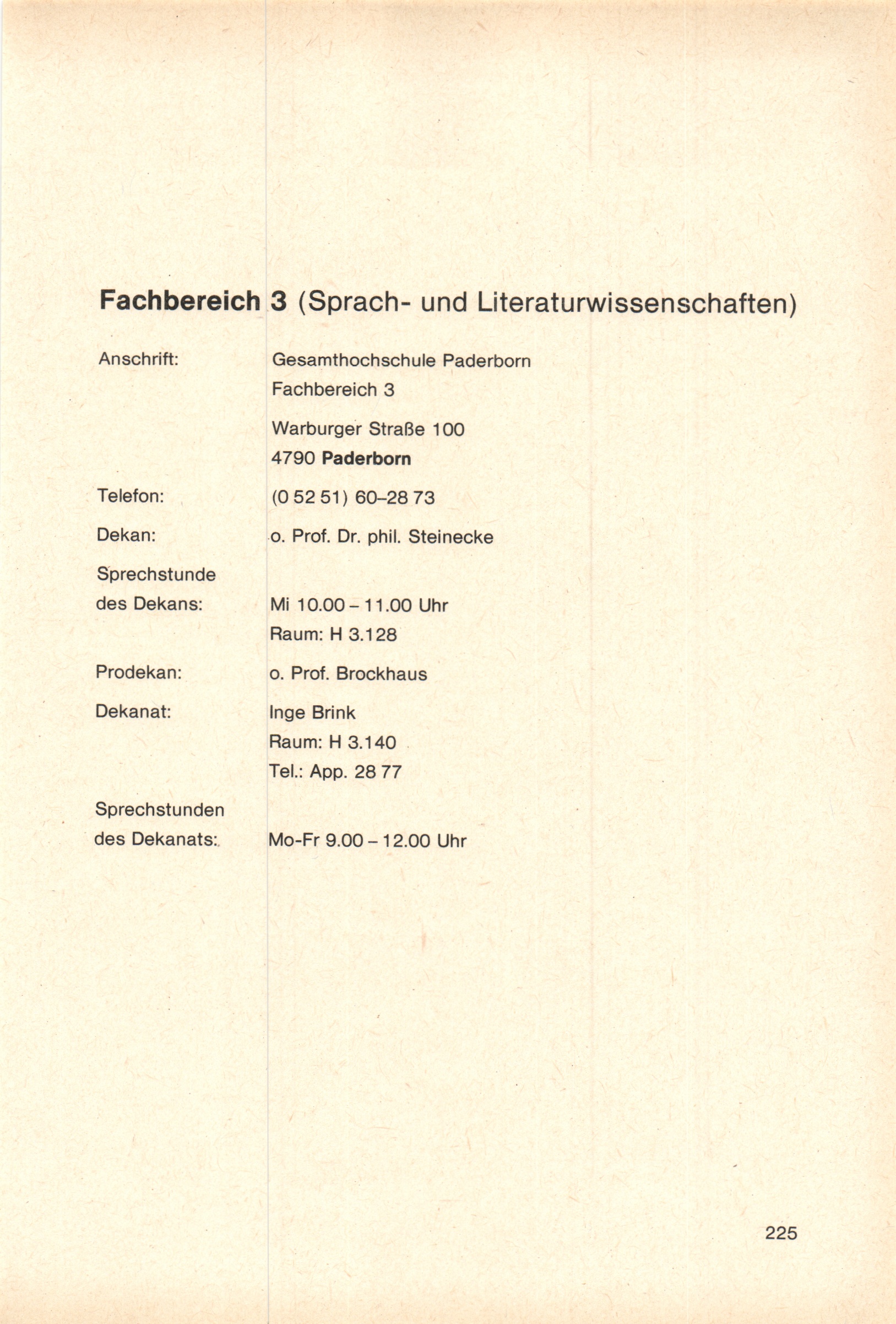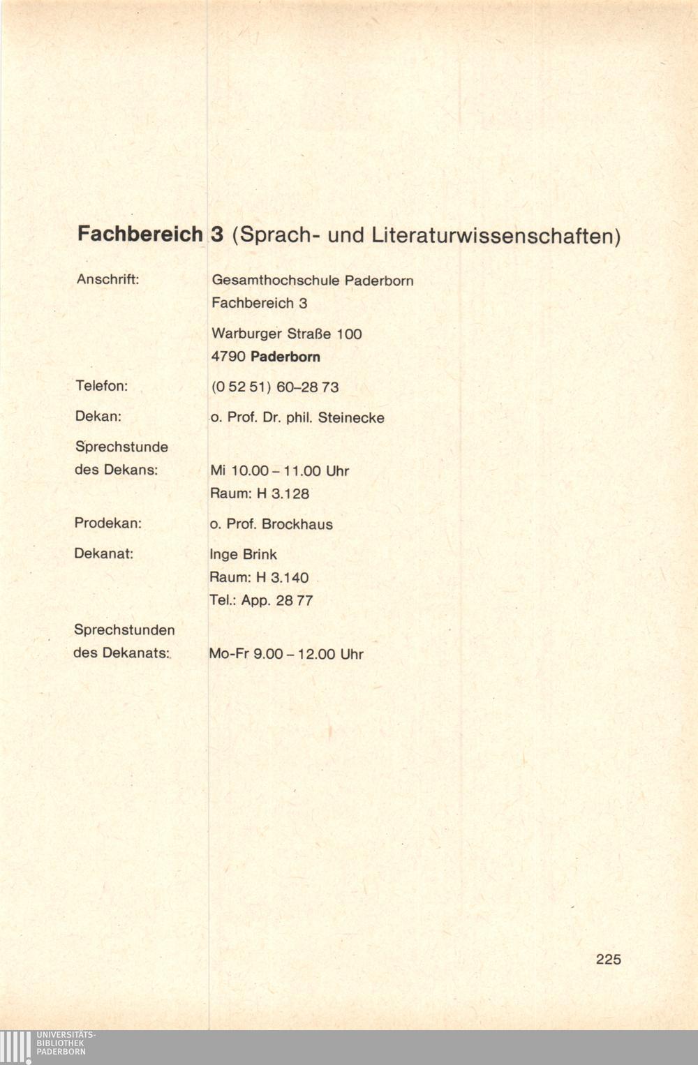 Personal- und Vorlesungsverzeichnis für die Gesamthochschule Paderborn