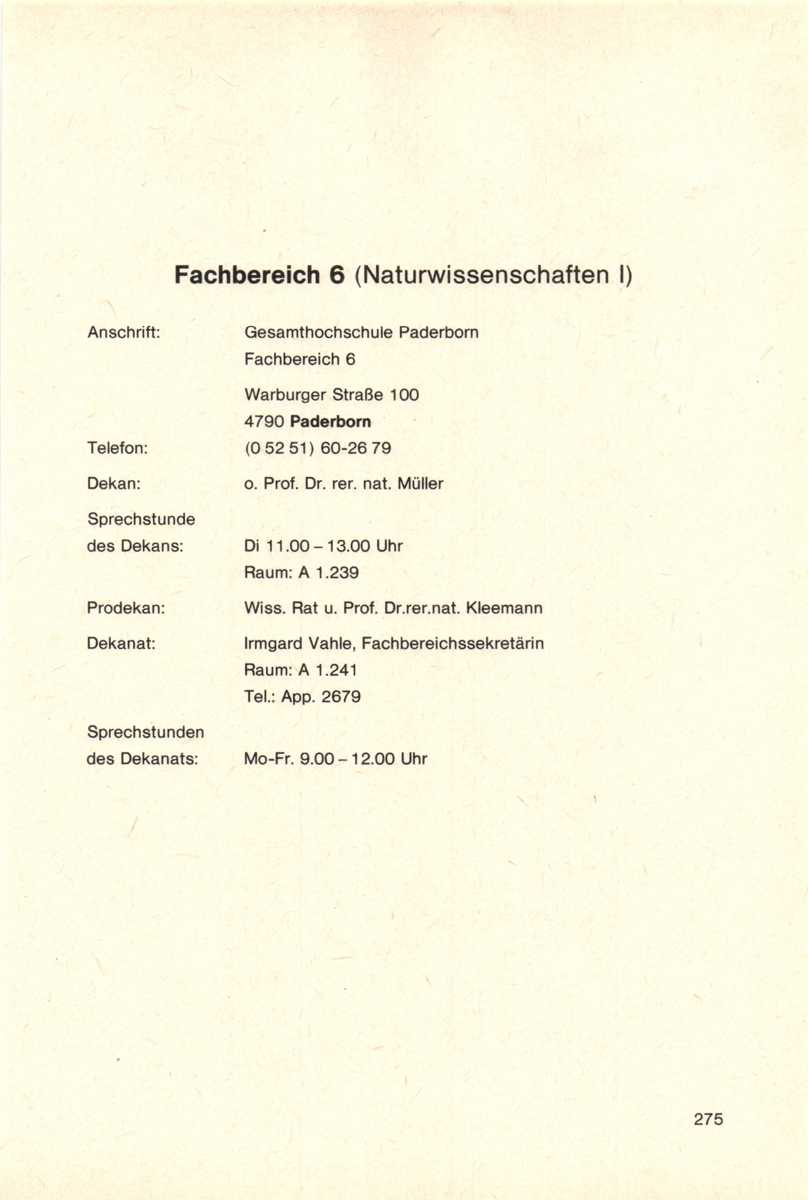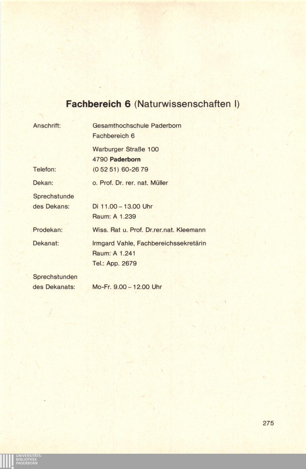Personal- und Vorlesungsverzeichnis für die Gesamthochschule Paderborn