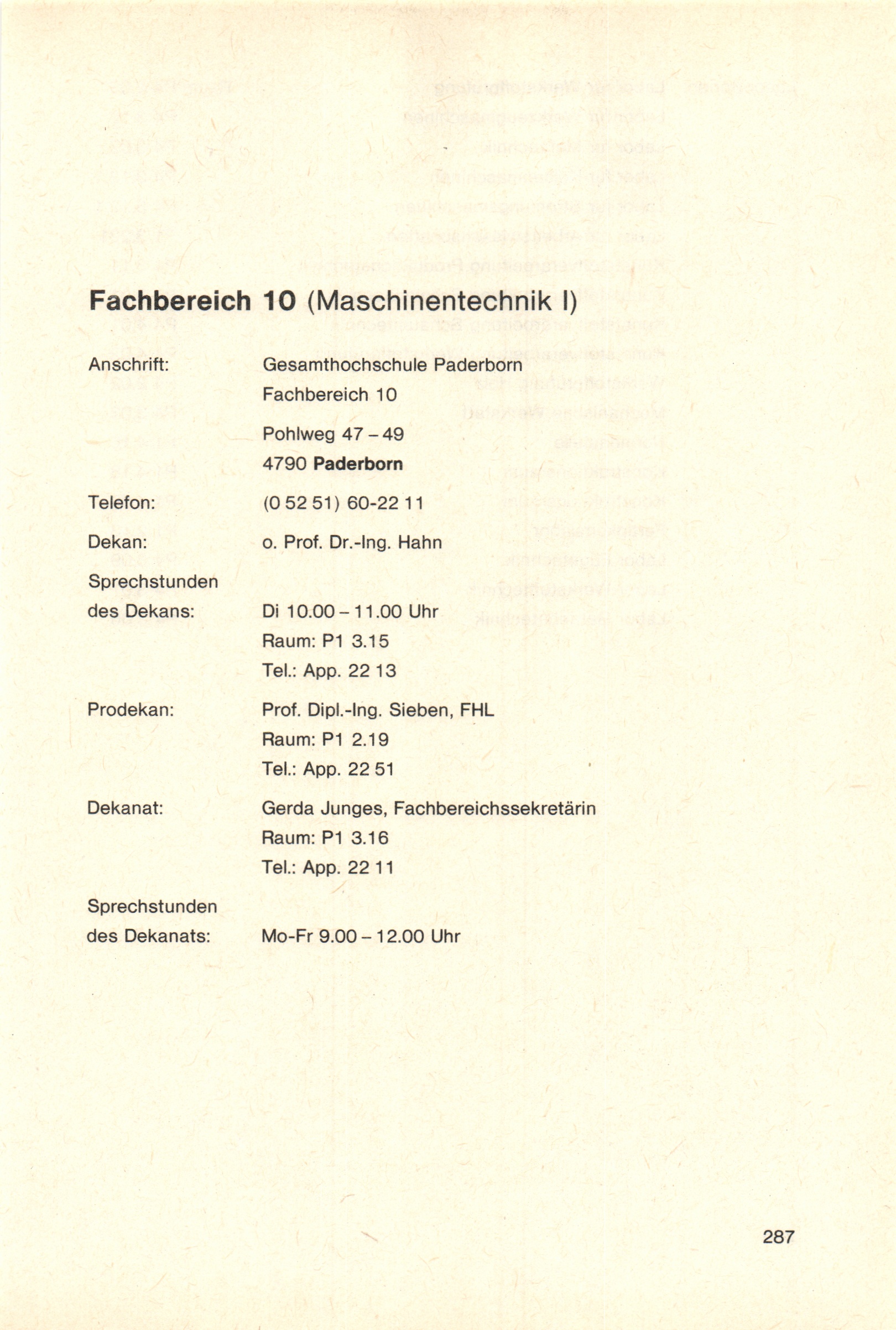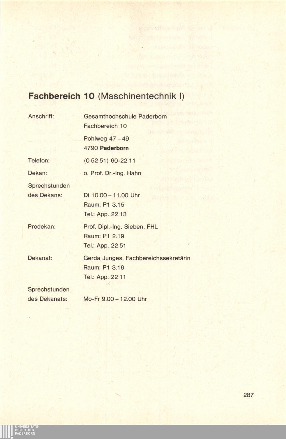 Personal- und Vorlesungsverzeichnis für die Gesamthochschule Paderborn