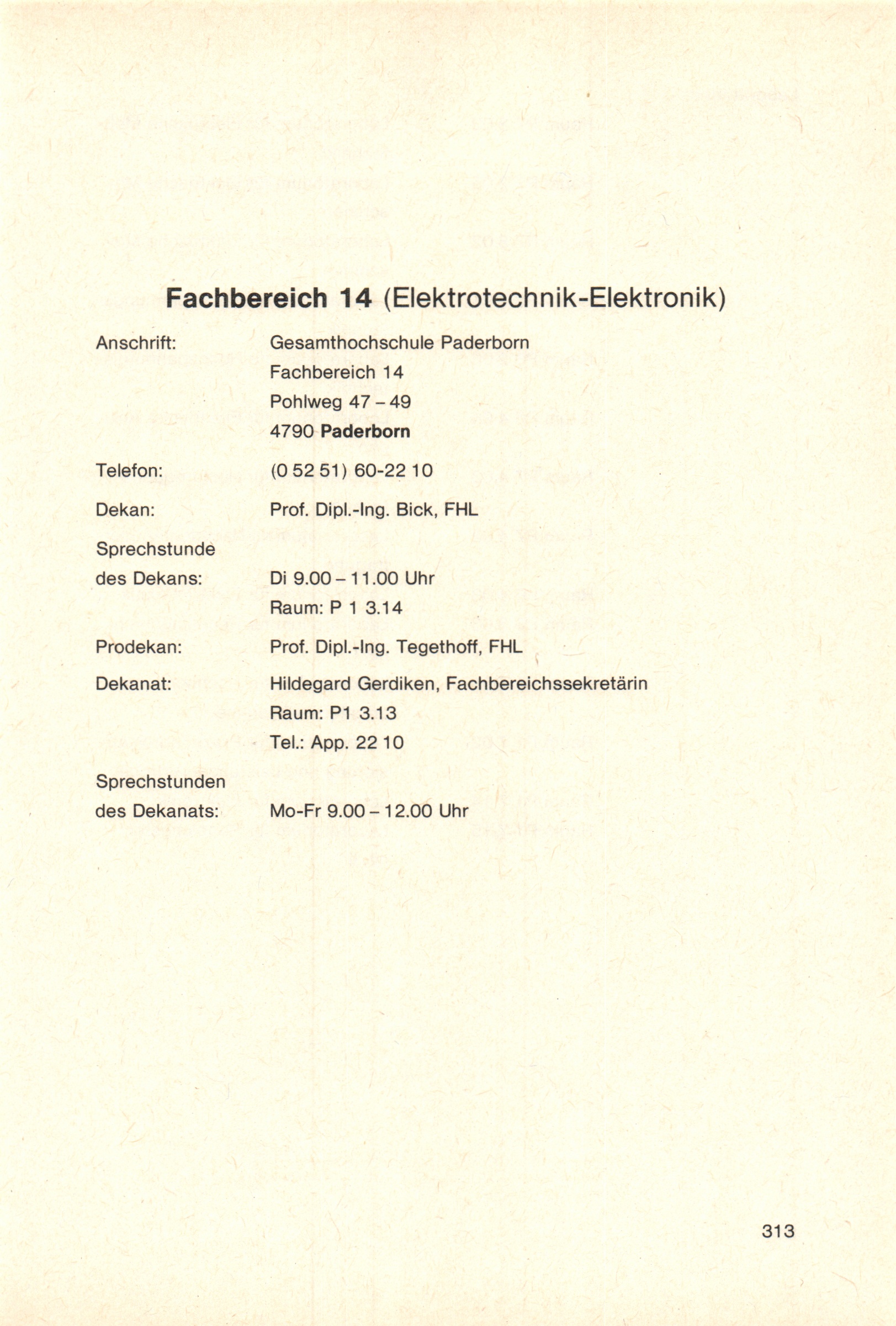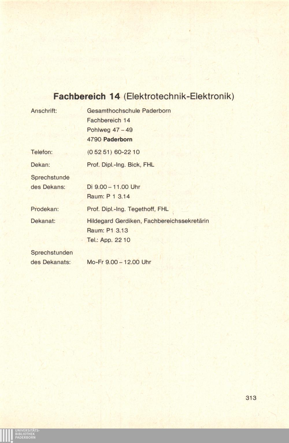 Personal- und Vorlesungsverzeichnis für die Gesamthochschule Paderborn