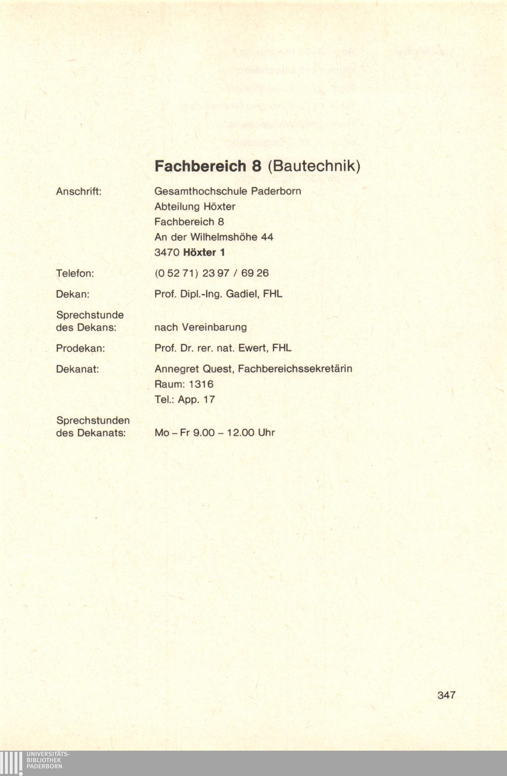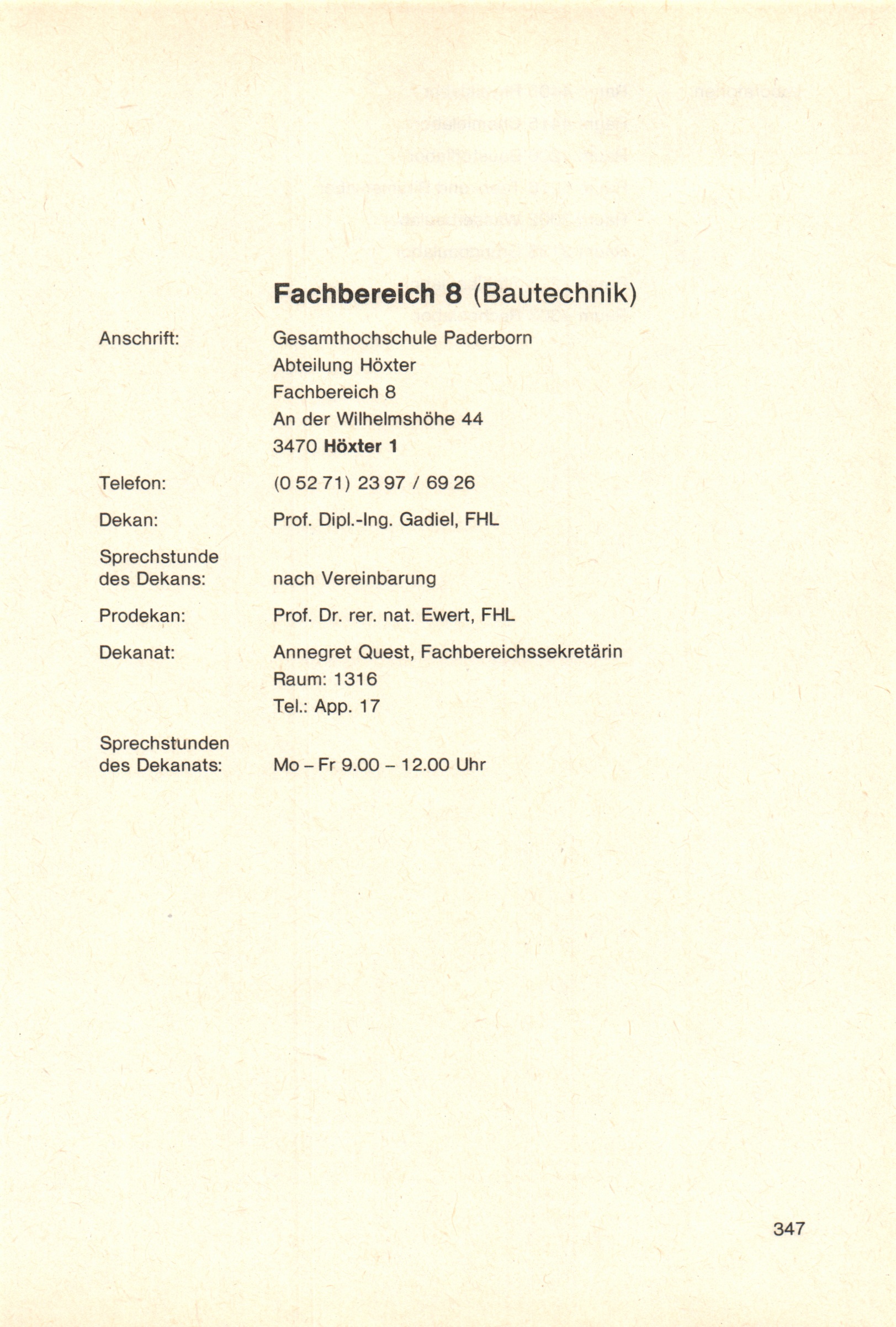 Personal- und Vorlesungsverzeichnis für die Gesamthochschule Paderborn