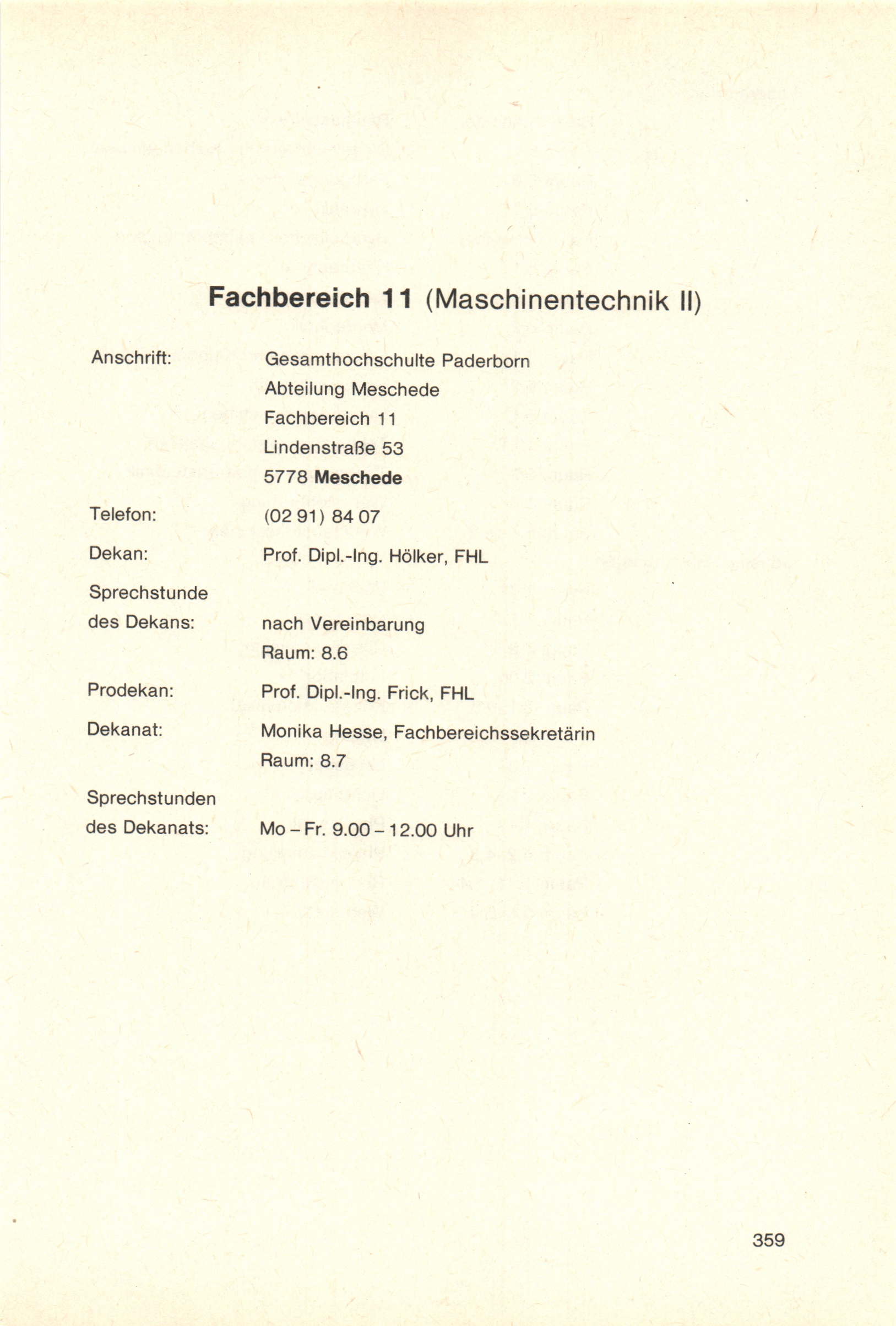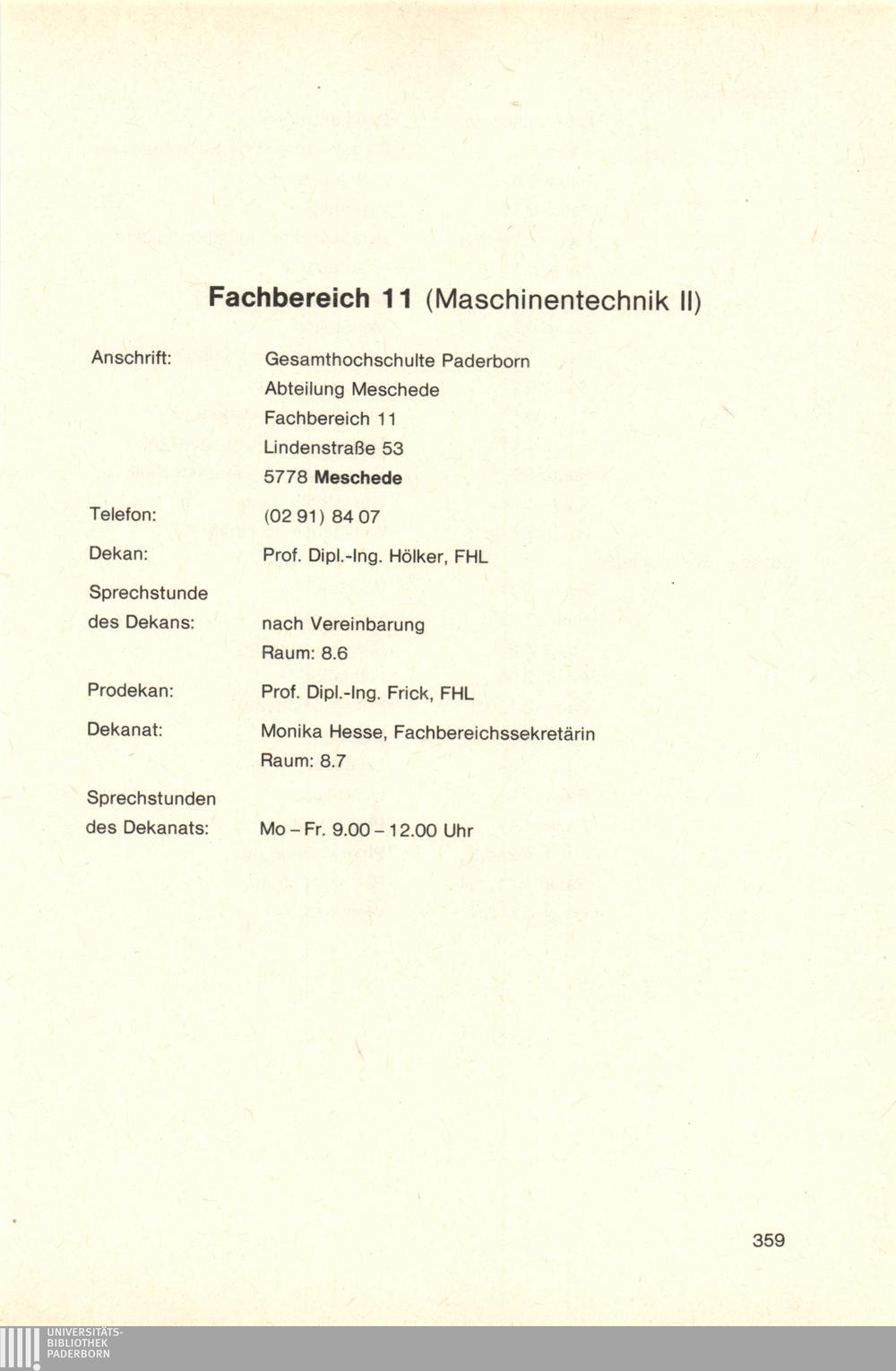 Personal- und Vorlesungsverzeichnis für die Gesamthochschule Paderborn