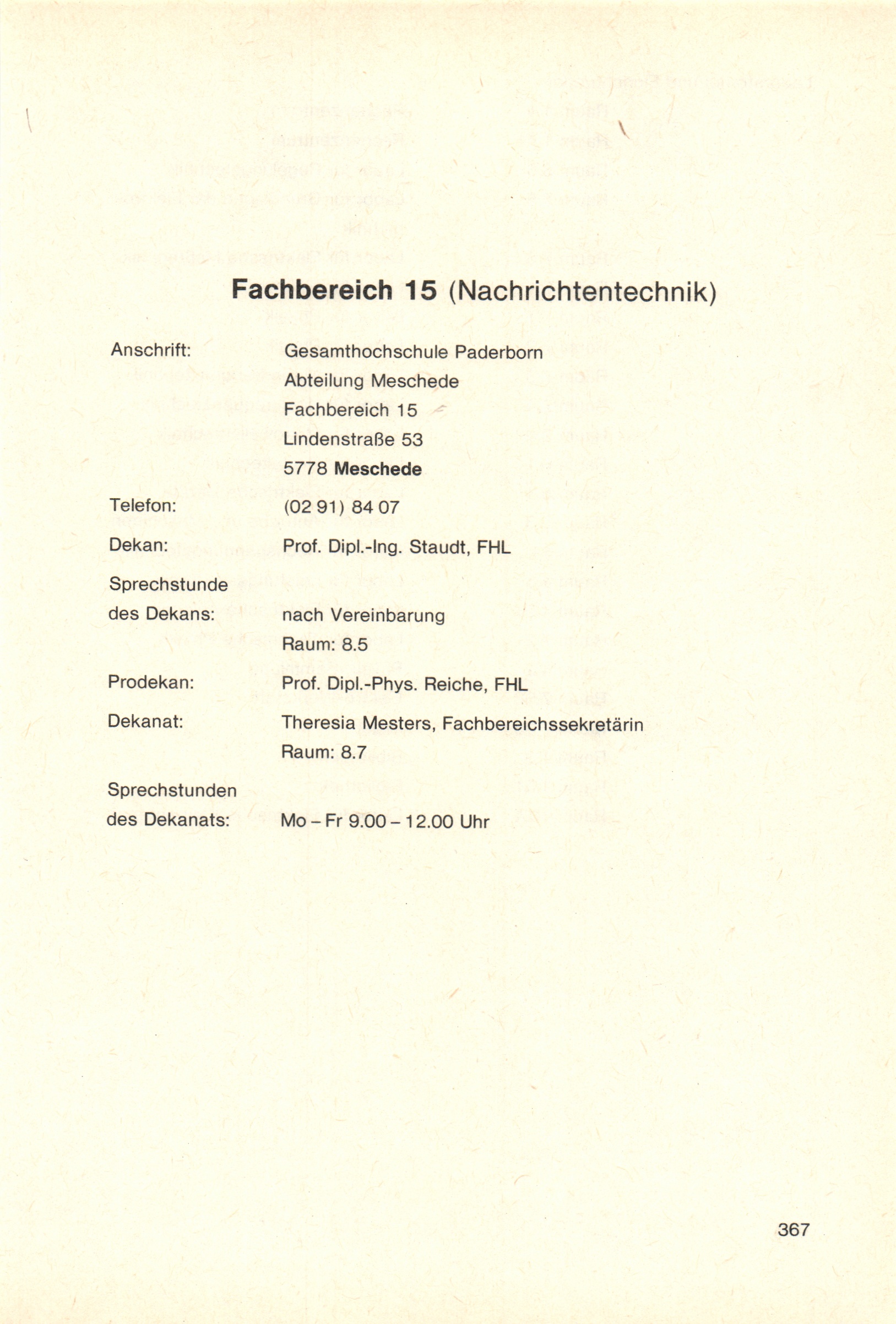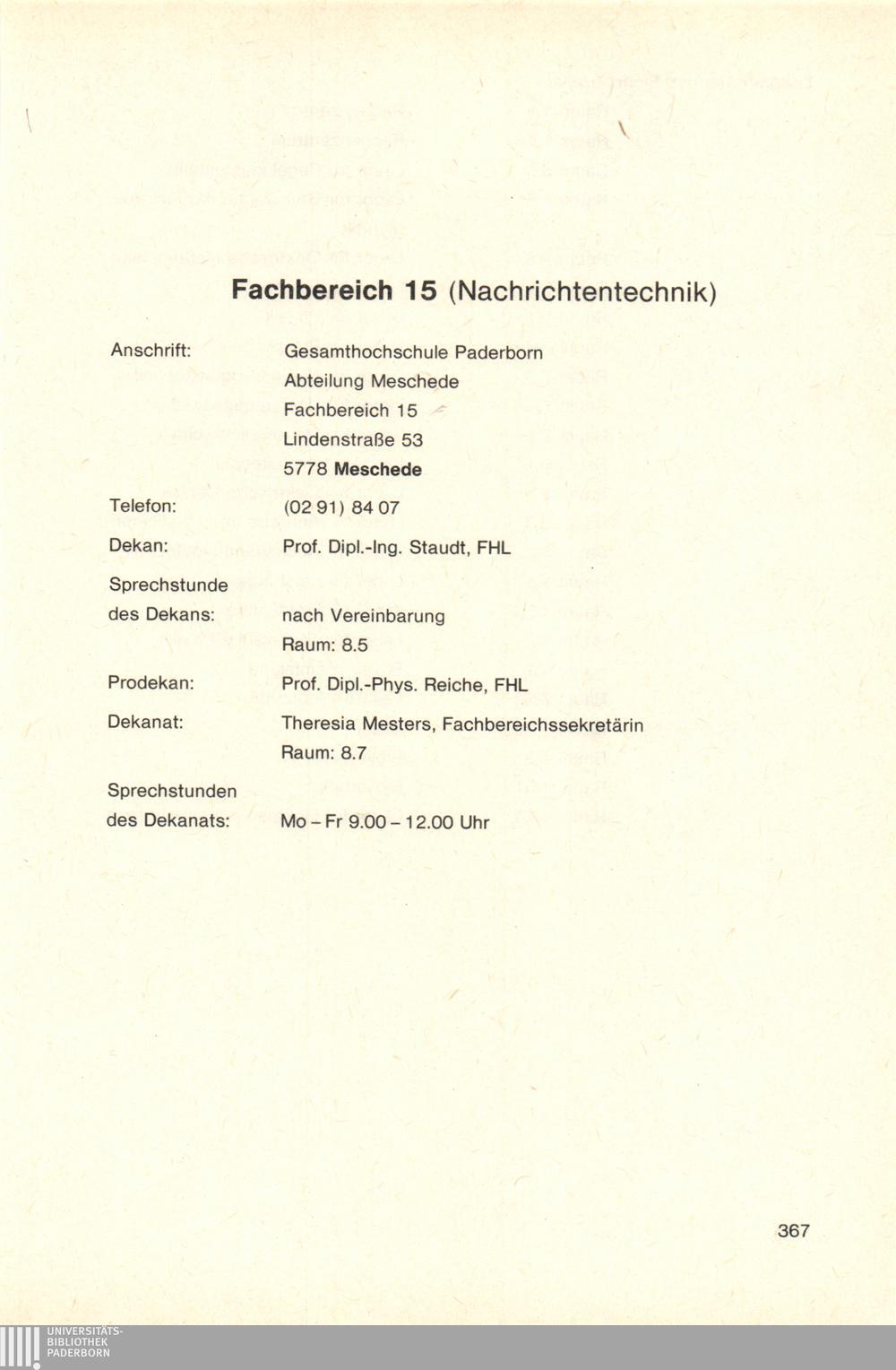 Personal- und Vorlesungsverzeichnis für die Gesamthochschule Paderborn