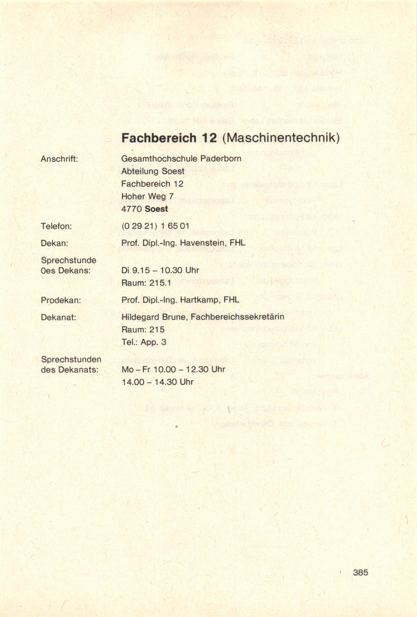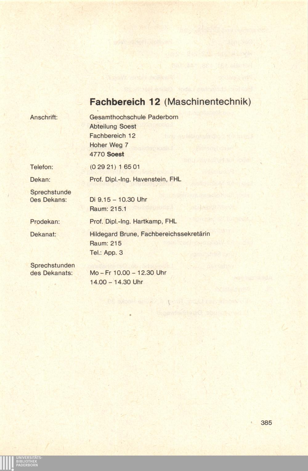 Personal- und Vorlesungsverzeichnis für die Gesamthochschule Paderborn