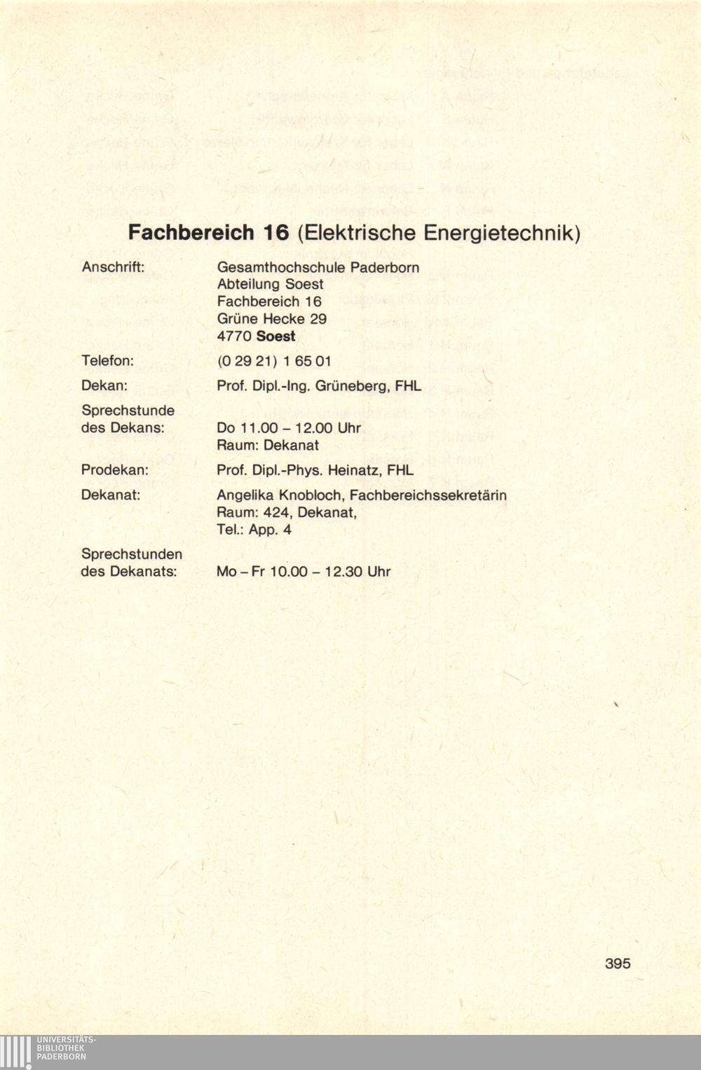 Personal- und Vorlesungsverzeichnis für die Gesamthochschule Paderborn