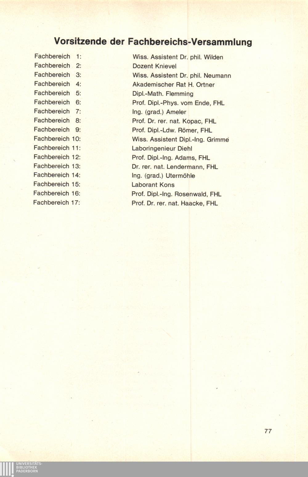 Personal- und Vorlesungsverzeichnis für die Gesamthochschule Paderborn