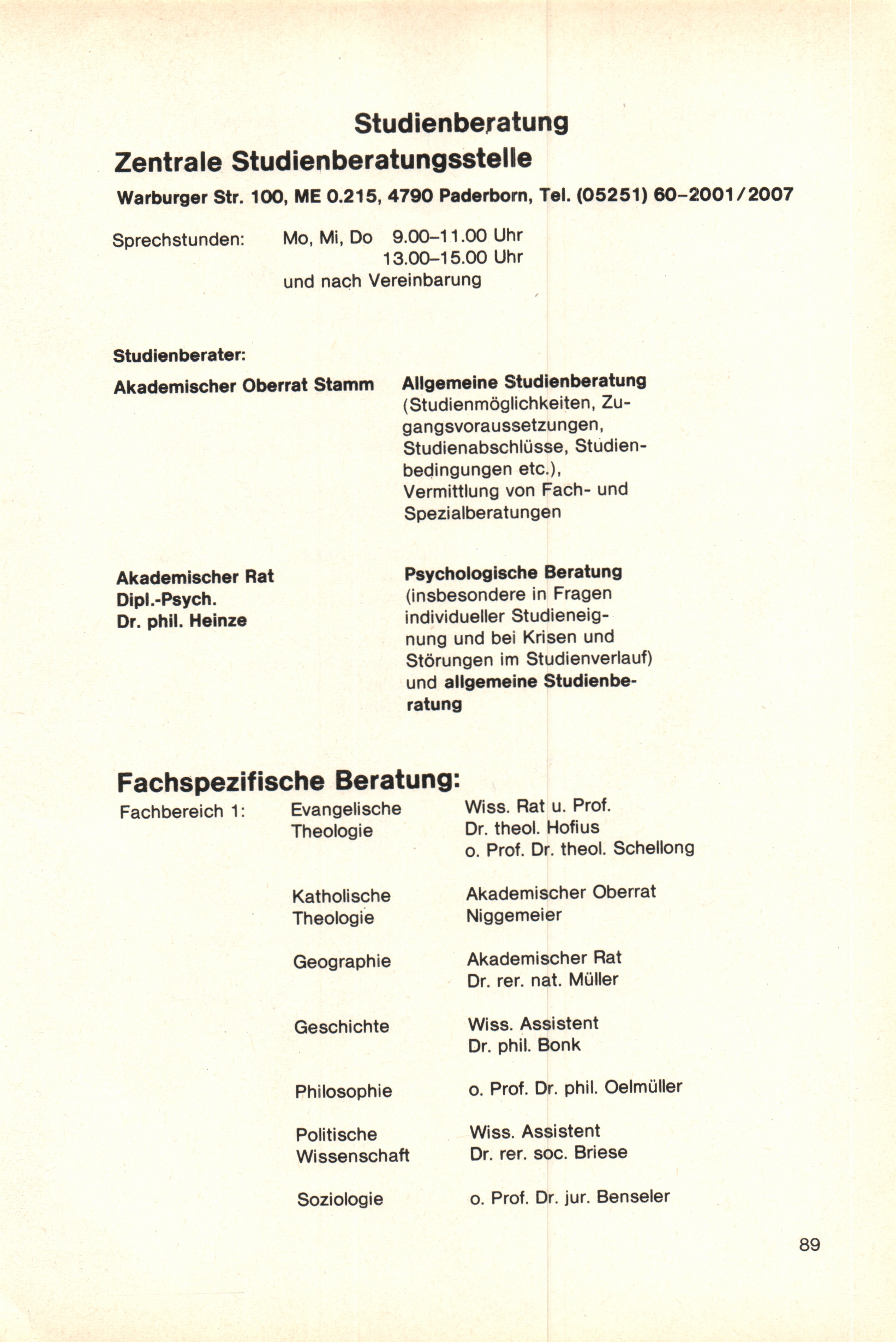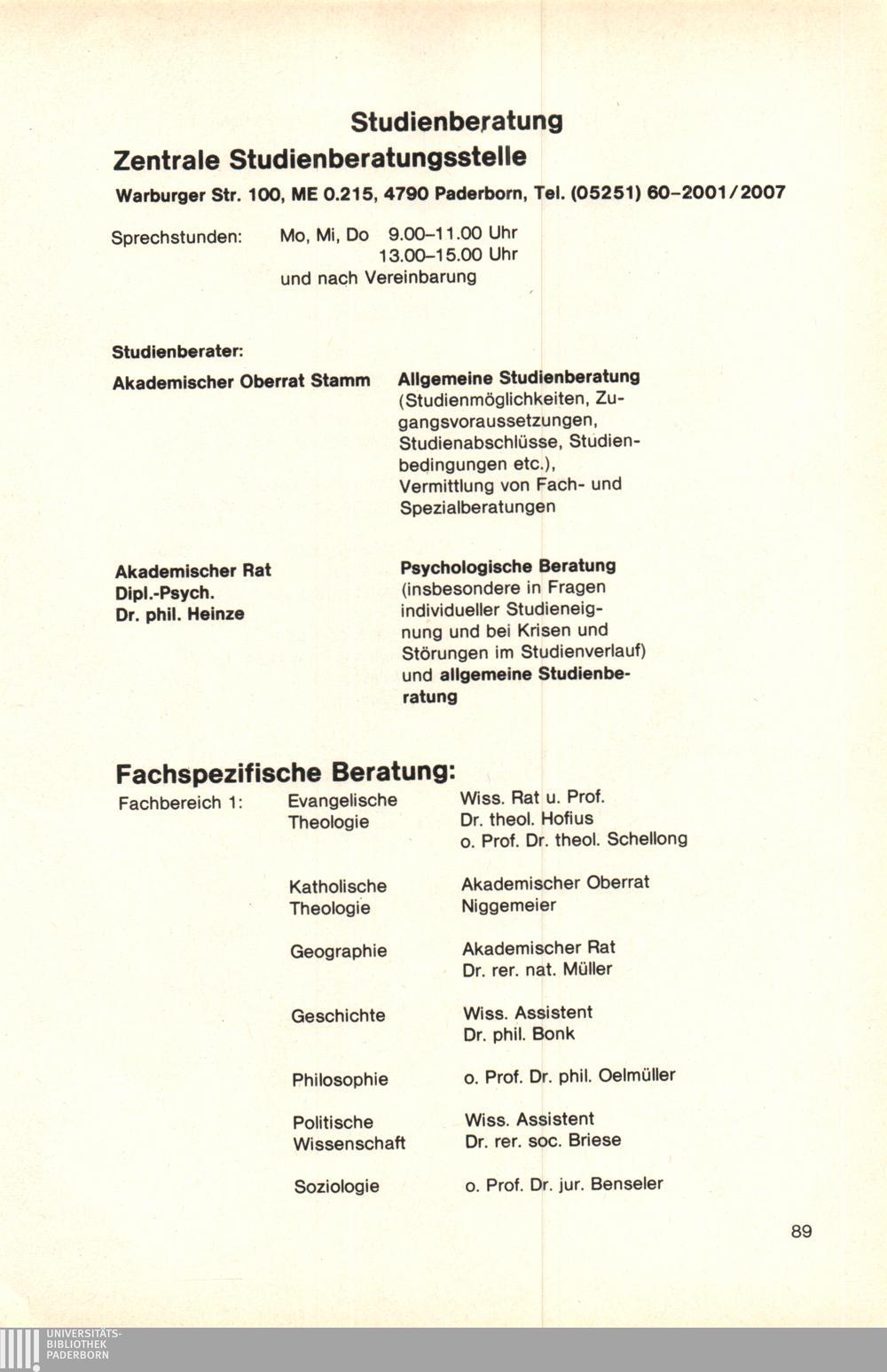 Personal- und Vorlesungsverzeichnis für die Gesamthochschule Paderborn