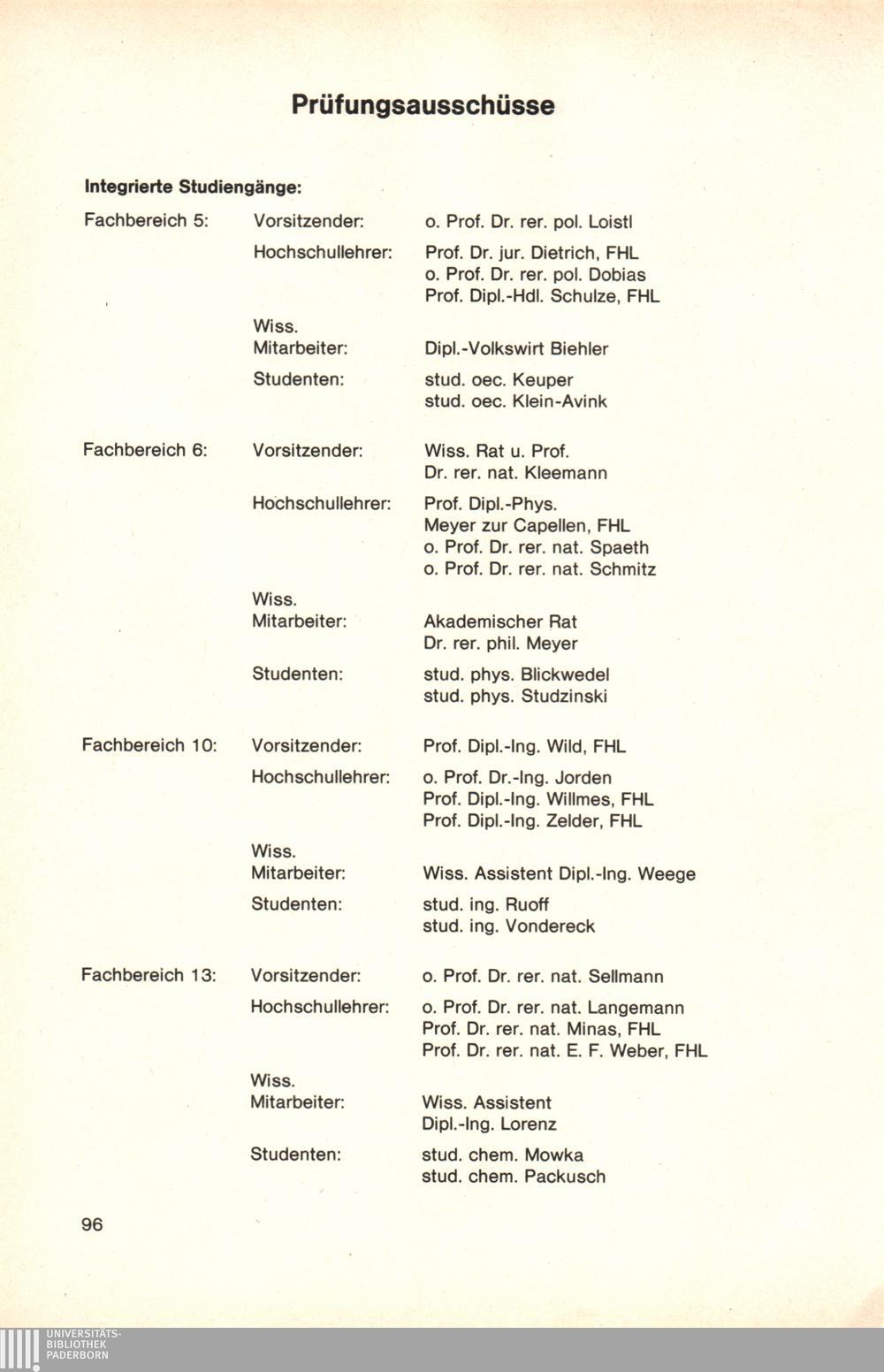 Personal- und Vorlesungsverzeichnis für die Gesamthochschule Paderborn