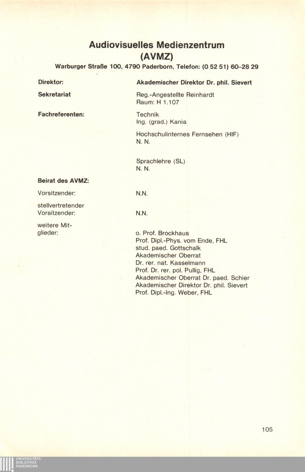 Personal- und Vorlesungsverzeichnis für die Gesamthochschule Paderborn