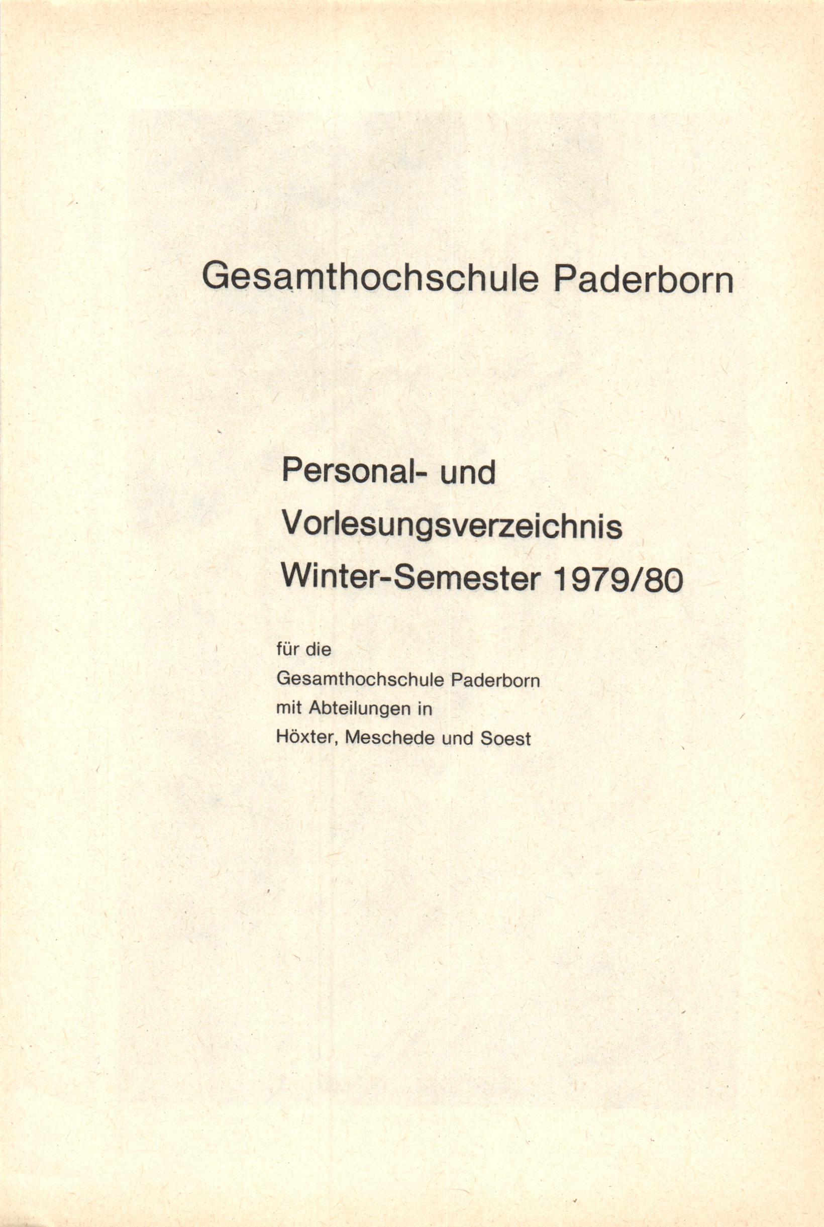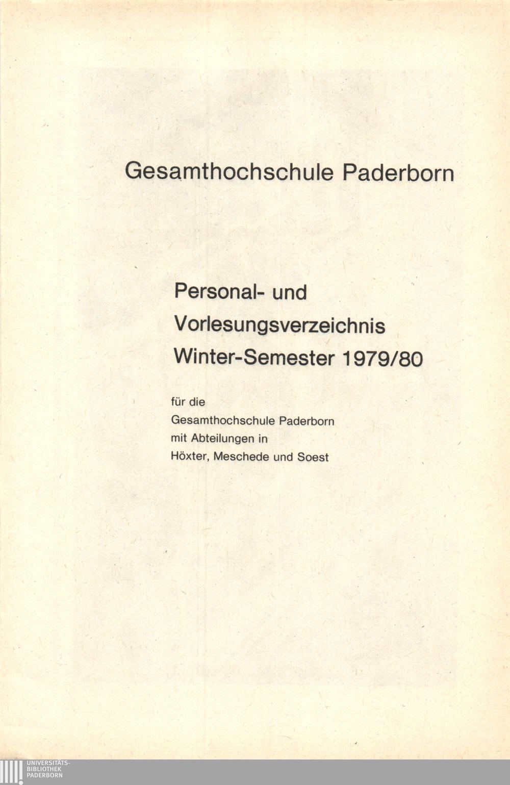Personal- und Vorlesungsverzeichnis für die Gesamthochschule Paderborn