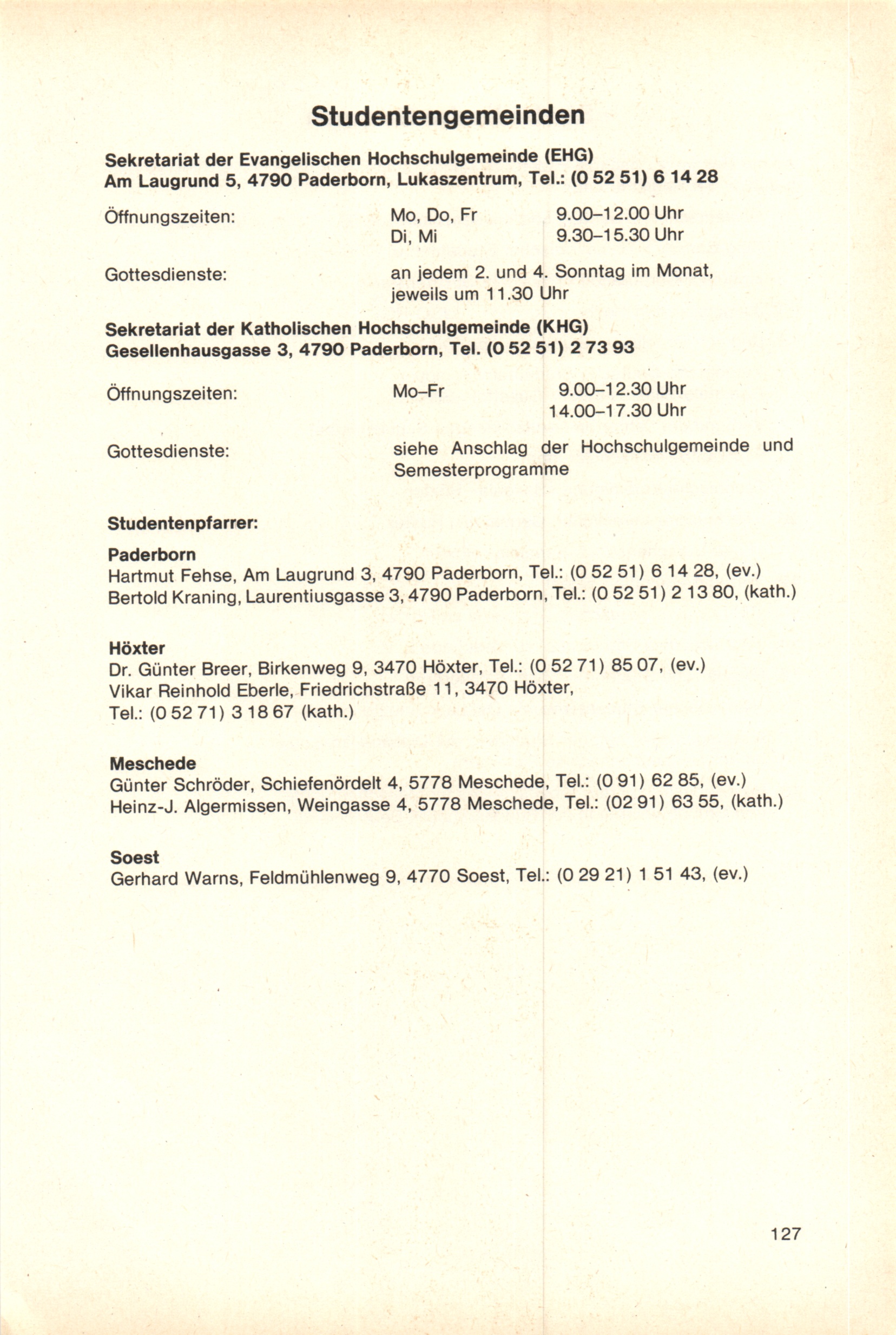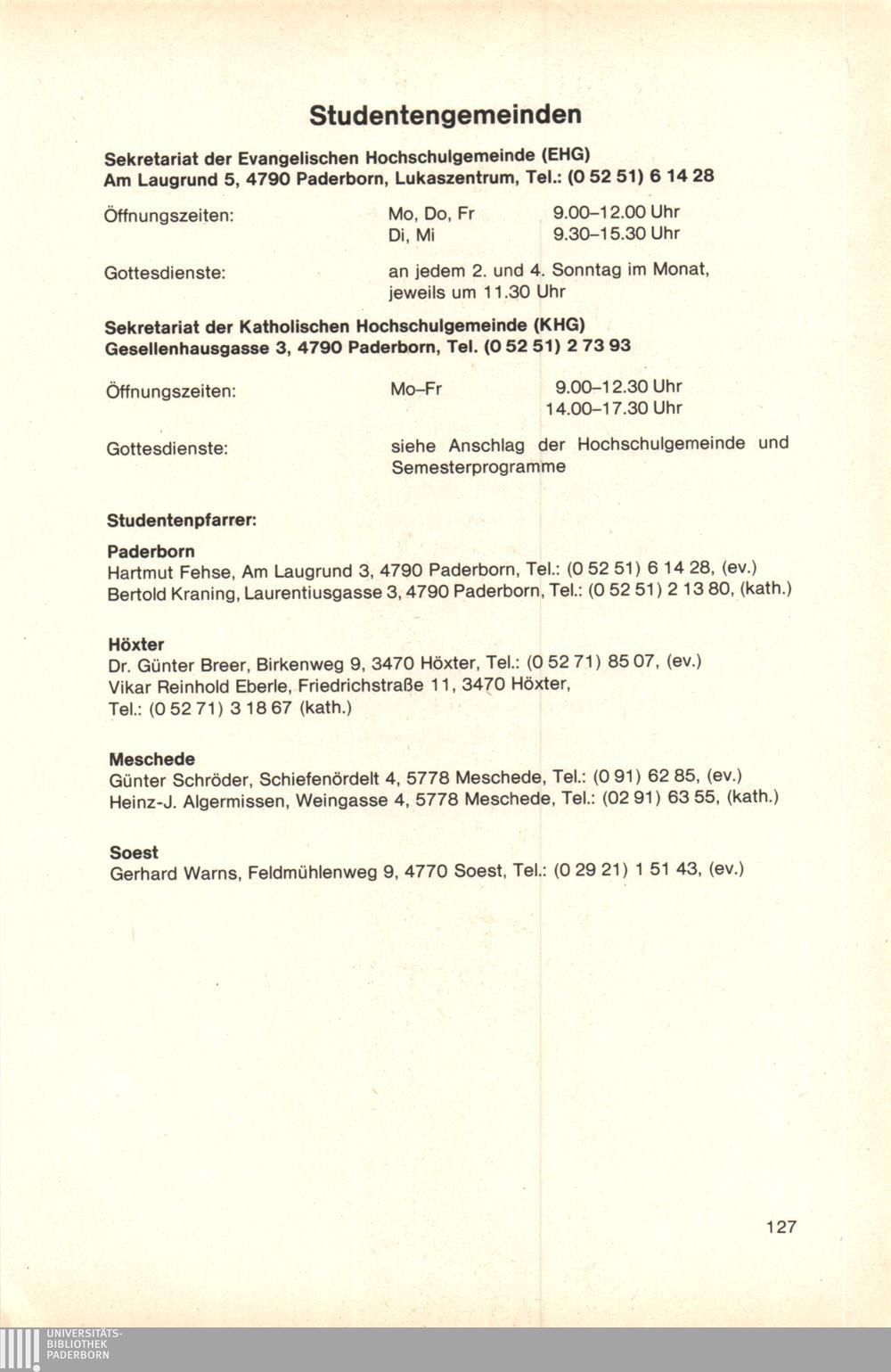 Personal- und Vorlesungsverzeichnis für die Gesamthochschule Paderborn
