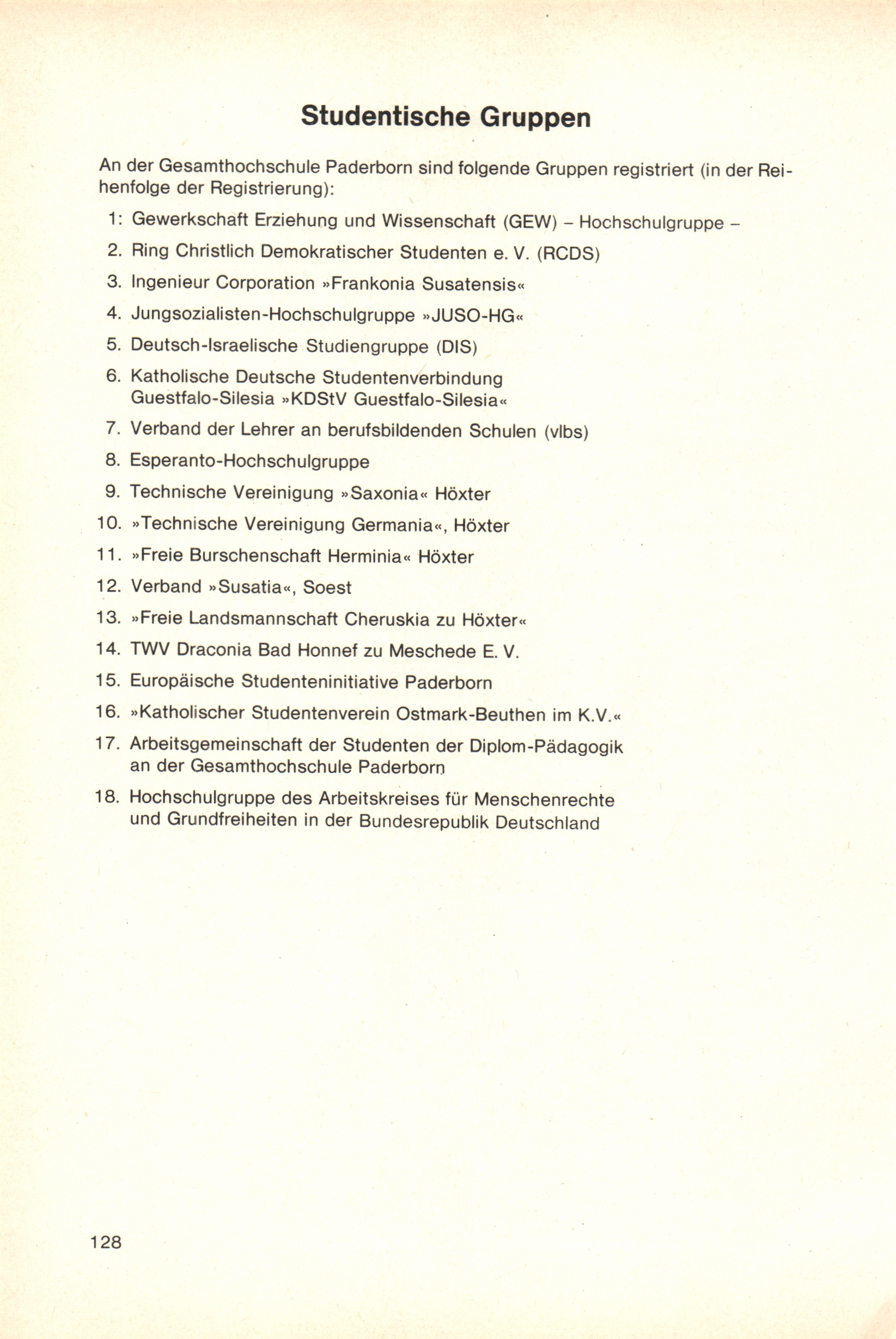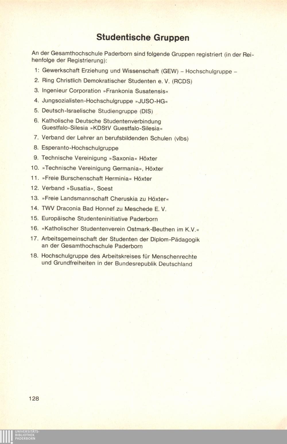 Personal- und Vorlesungsverzeichnis für die Gesamthochschule Paderborn