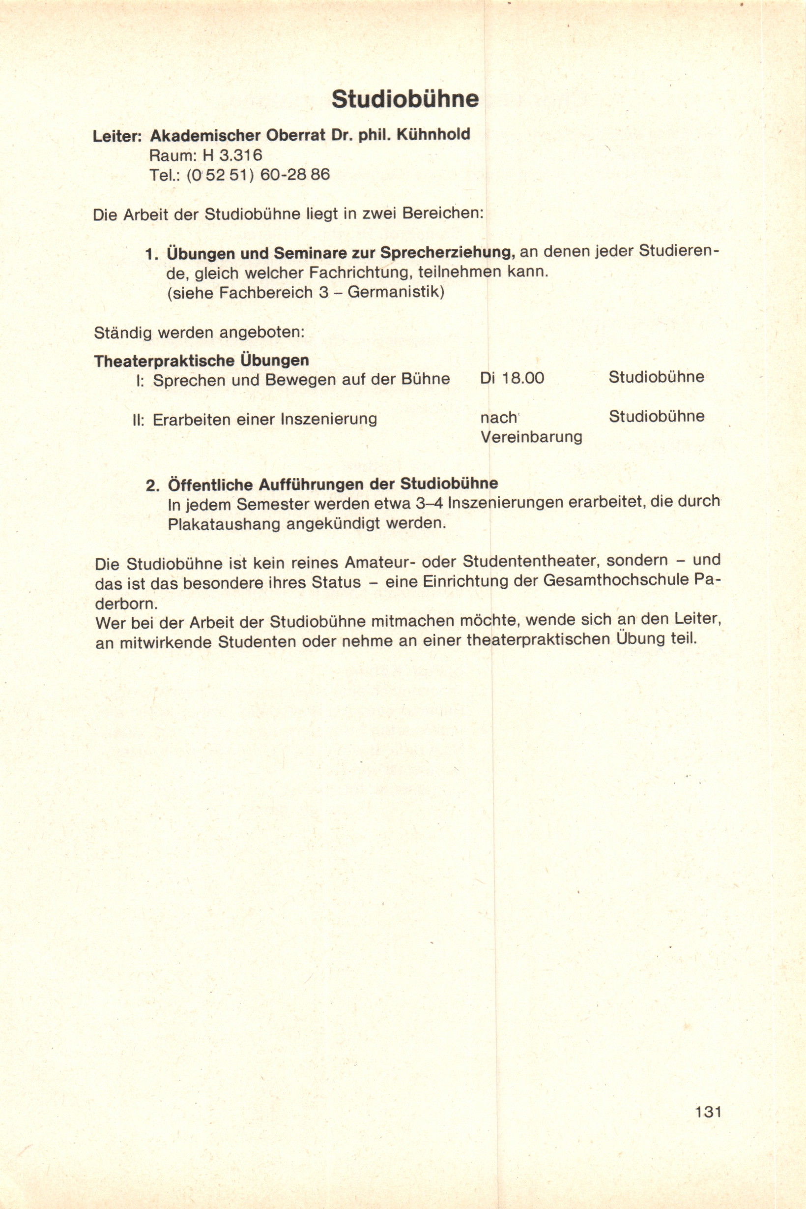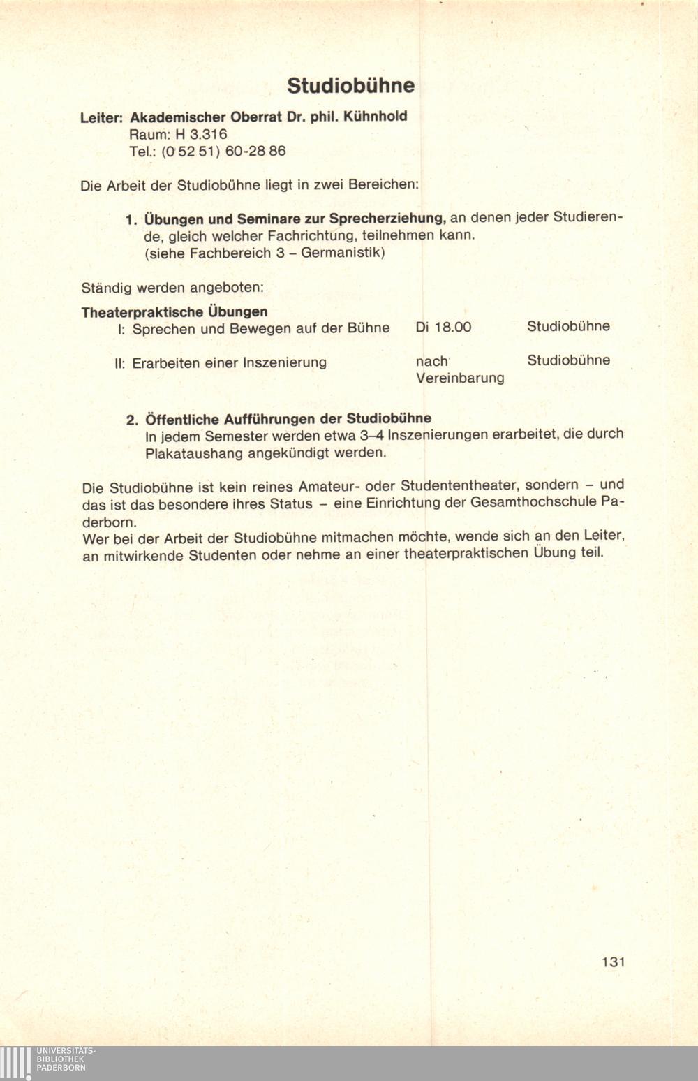 Personal- und Vorlesungsverzeichnis für die Gesamthochschule Paderborn