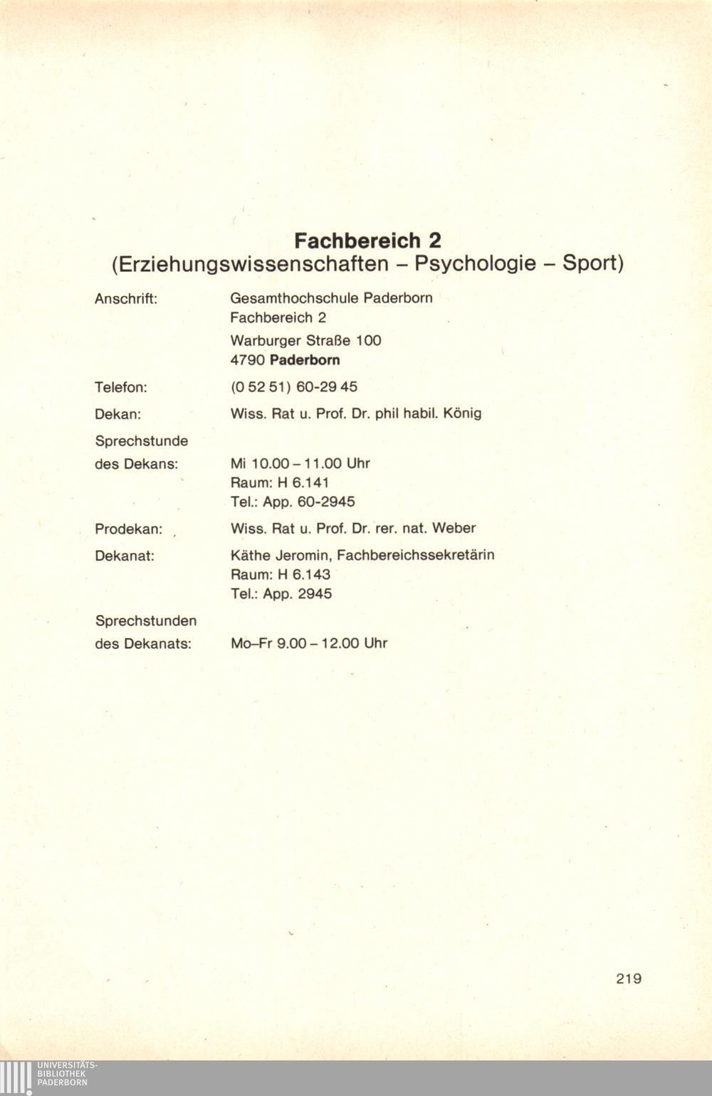 Personal- und Vorlesungsverzeichnis für die Gesamthochschule Paderborn
