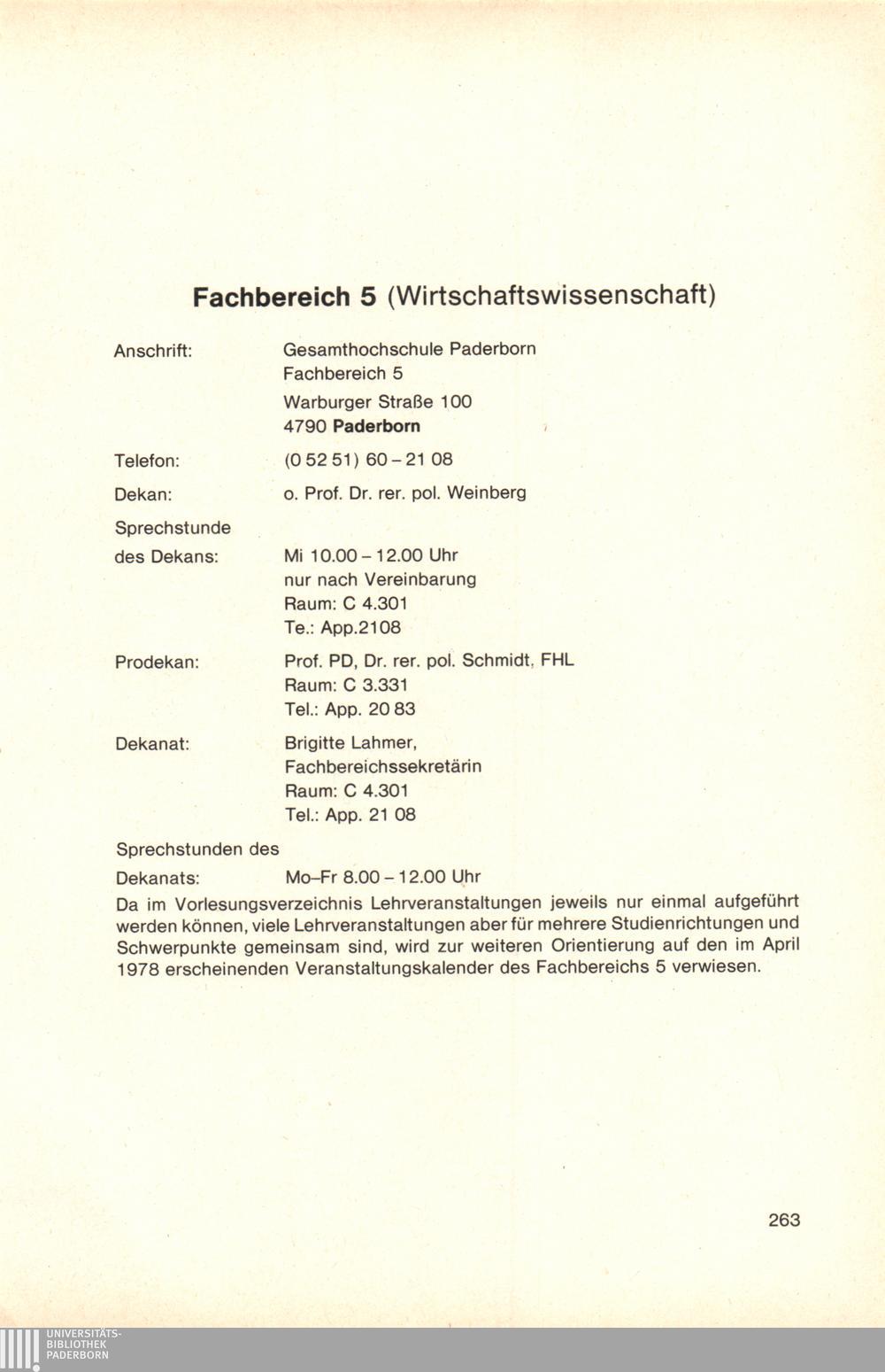 Personal- und Vorlesungsverzeichnis für die Gesamthochschule Paderborn