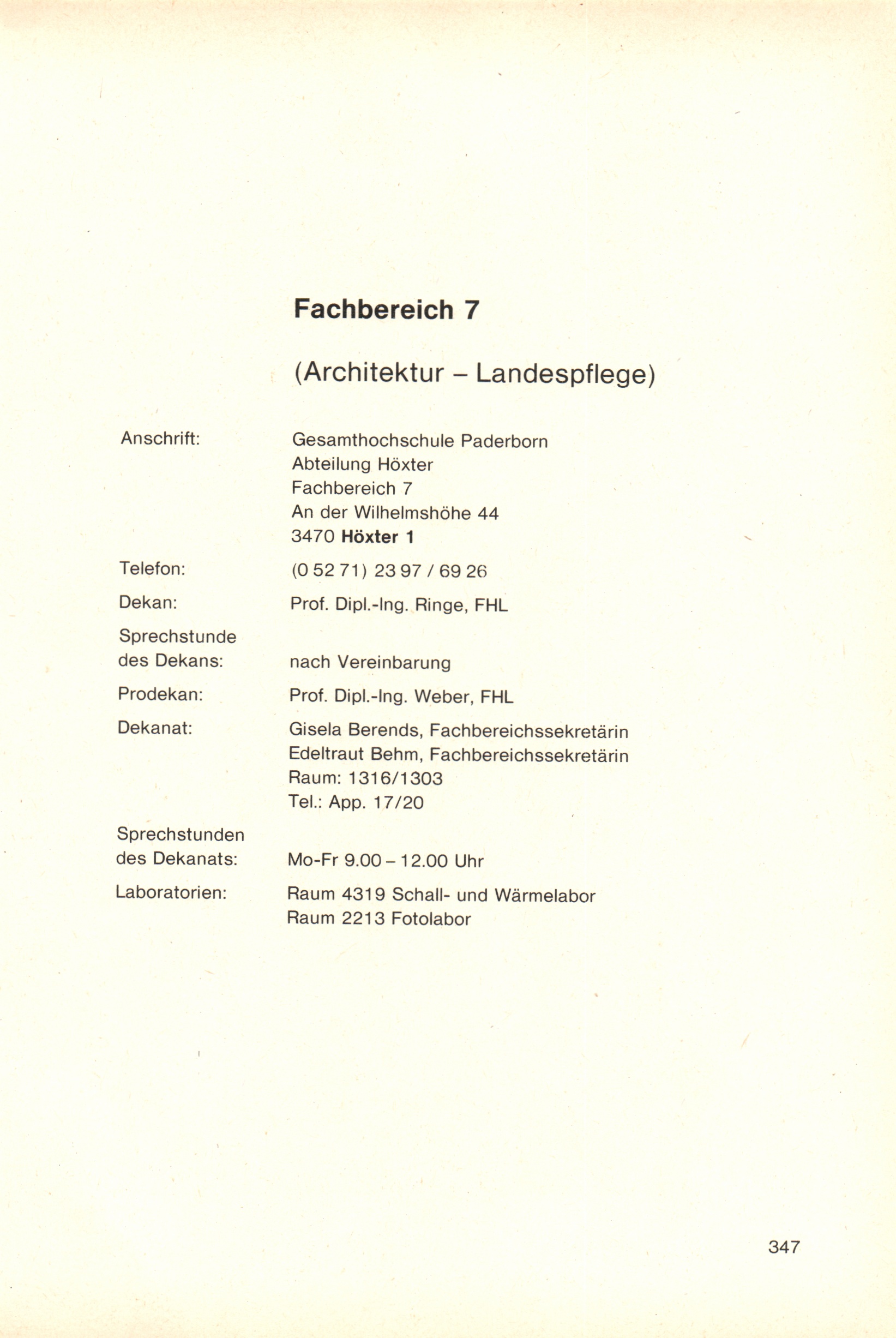 Personal- und Vorlesungsverzeichnis für die Gesamthochschule Paderborn