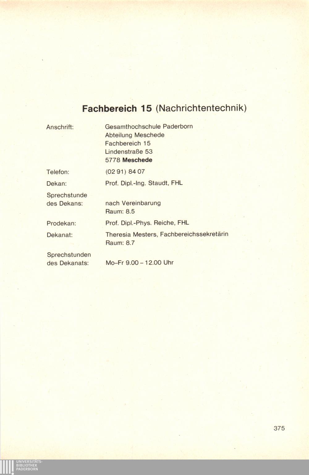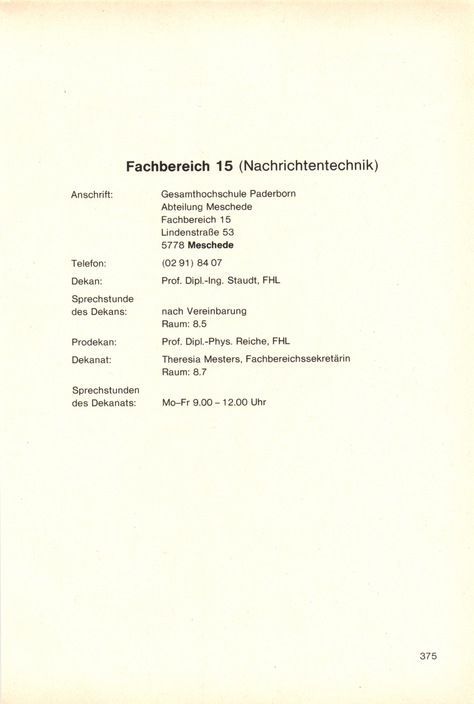 Personal- und Vorlesungsverzeichnis für die Gesamthochschule Paderborn
