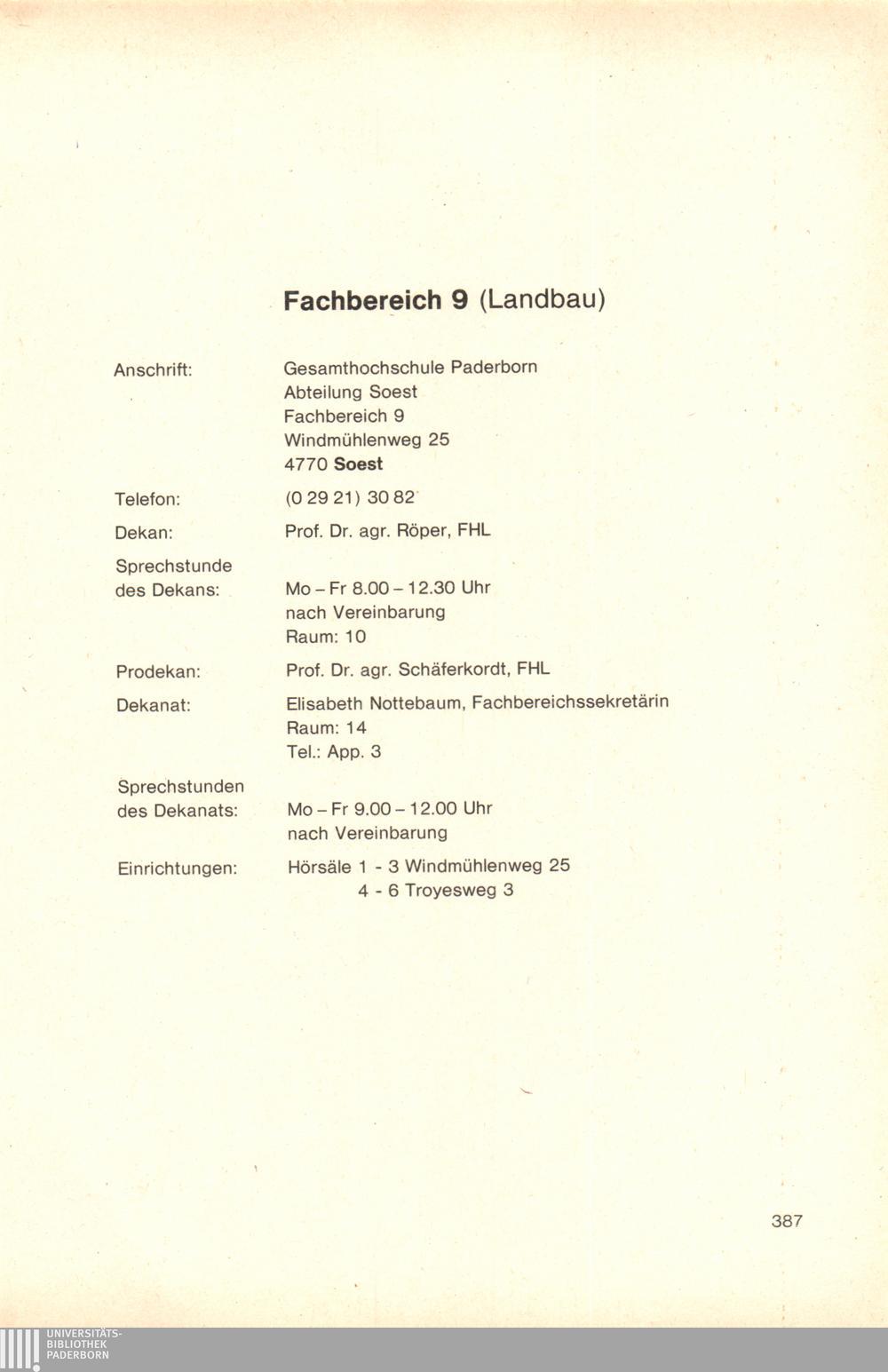 Personal- und Vorlesungsverzeichnis für die Gesamthochschule Paderborn