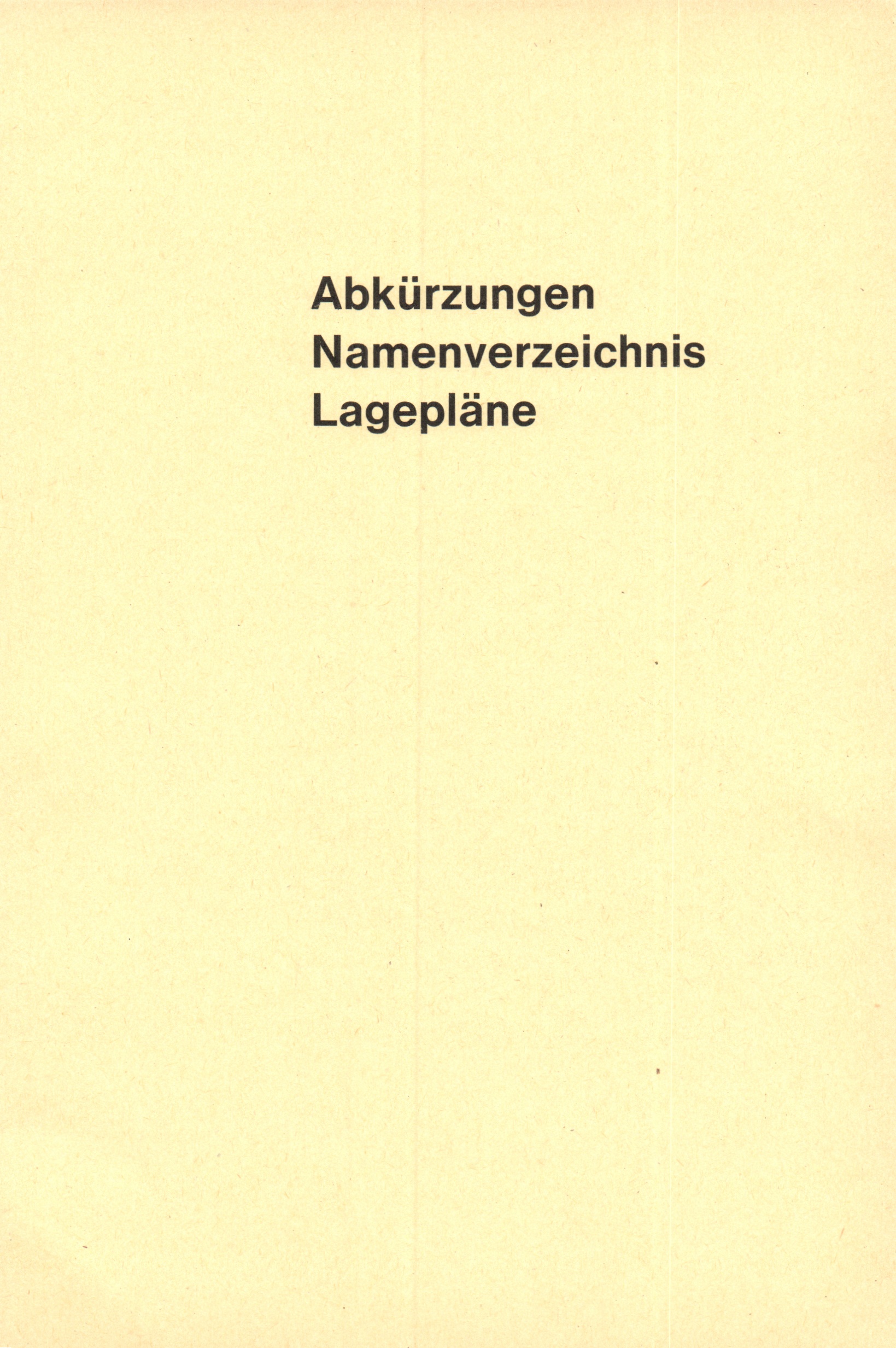 Abkürzungen, Namenverzeichnis, Lagepläne
