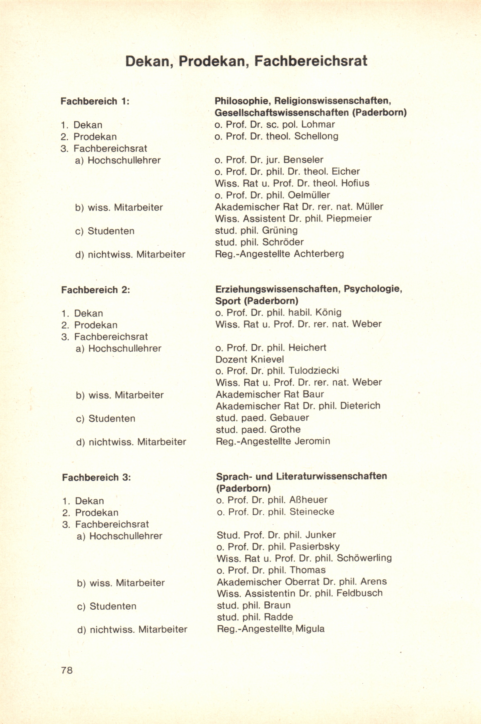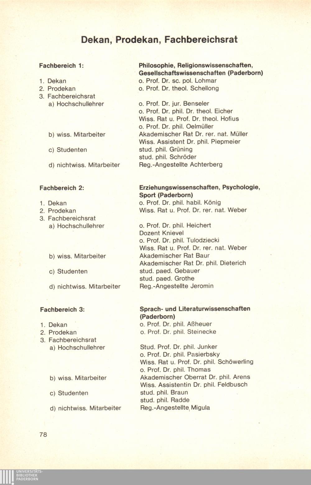 Personal- und Vorlesungsverzeichnis für die Gesamthochschule Paderborn