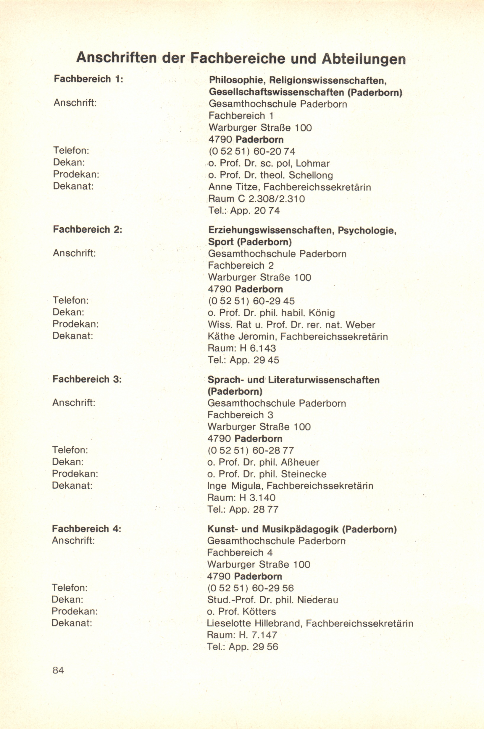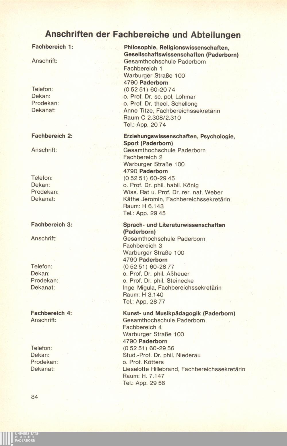 Personal- und Vorlesungsverzeichnis für die Gesamthochschule Paderborn