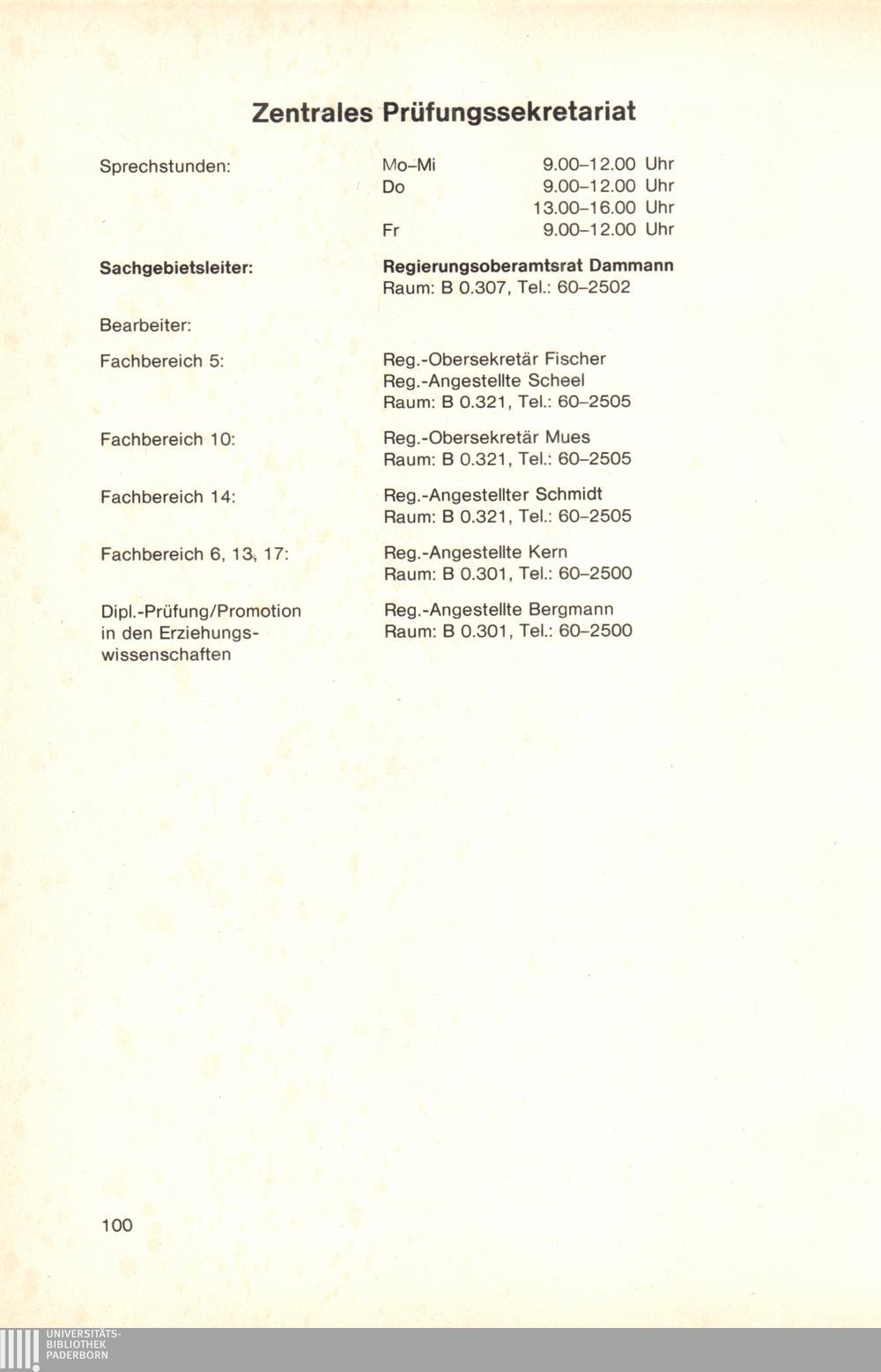 Personal- und Vorlesungsverzeichnis für die Gesamthochschule Paderborn