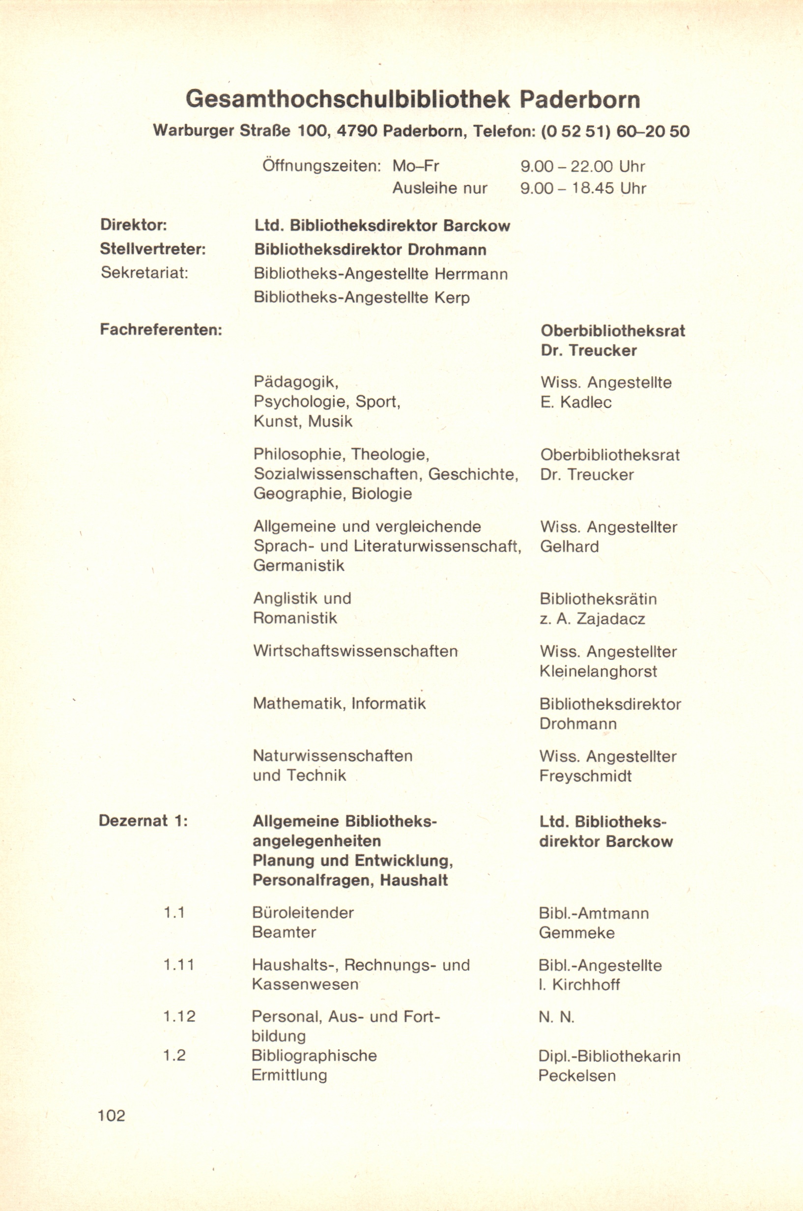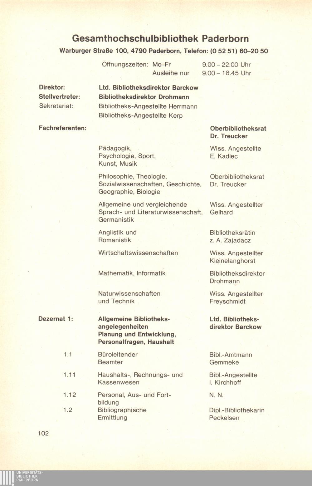 Personal- und Vorlesungsverzeichnis für die Gesamthochschule Paderborn