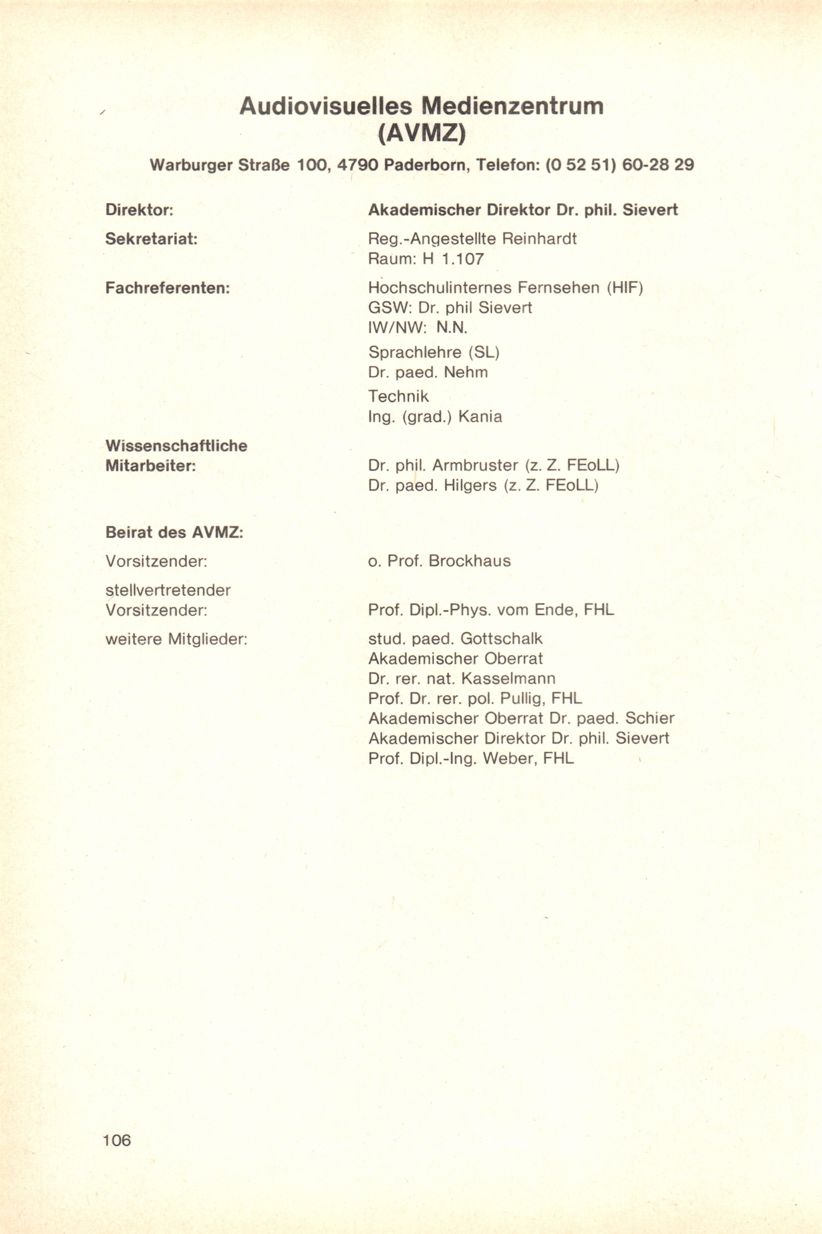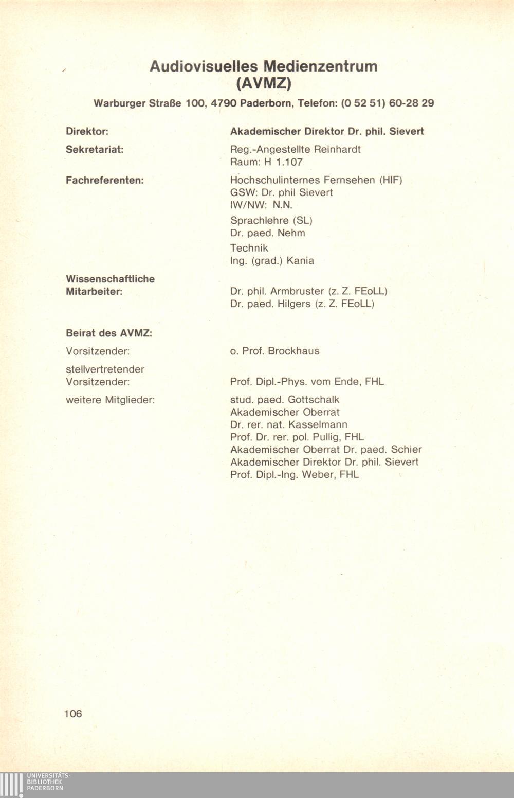 Personal- und Vorlesungsverzeichnis für die Gesamthochschule Paderborn