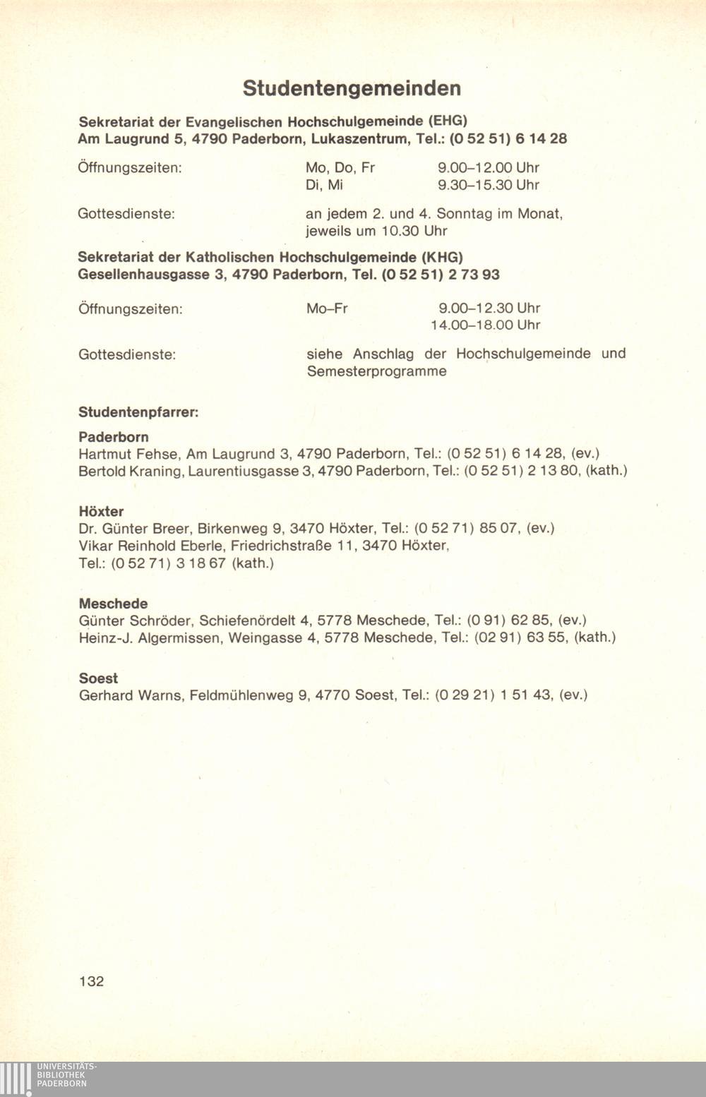 Personal- und Vorlesungsverzeichnis für die Gesamthochschule Paderborn