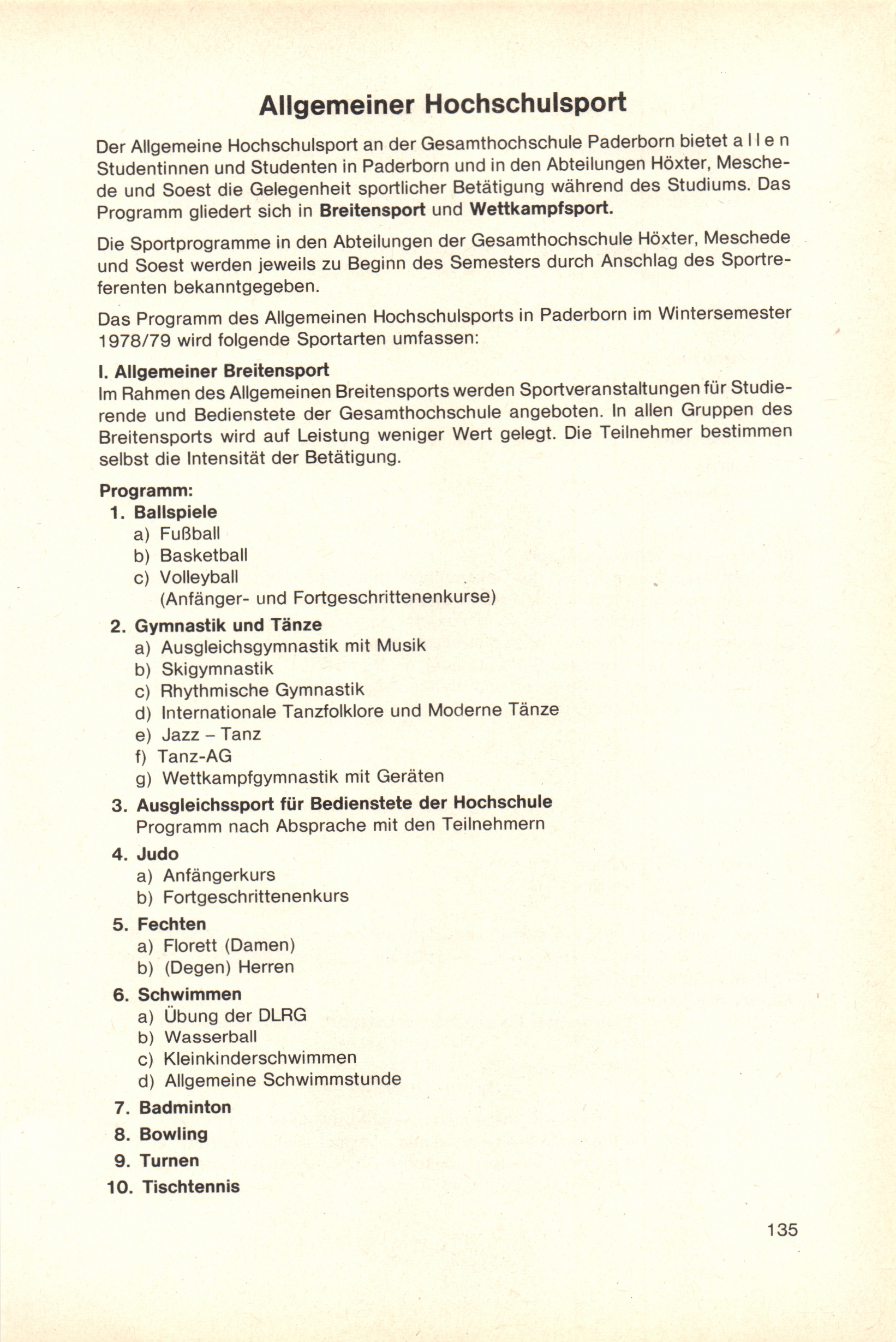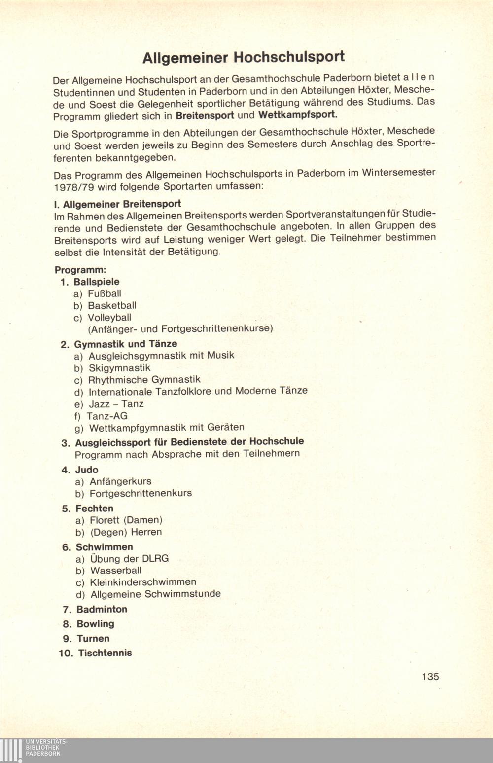 Allgemeiner Hochschulsport