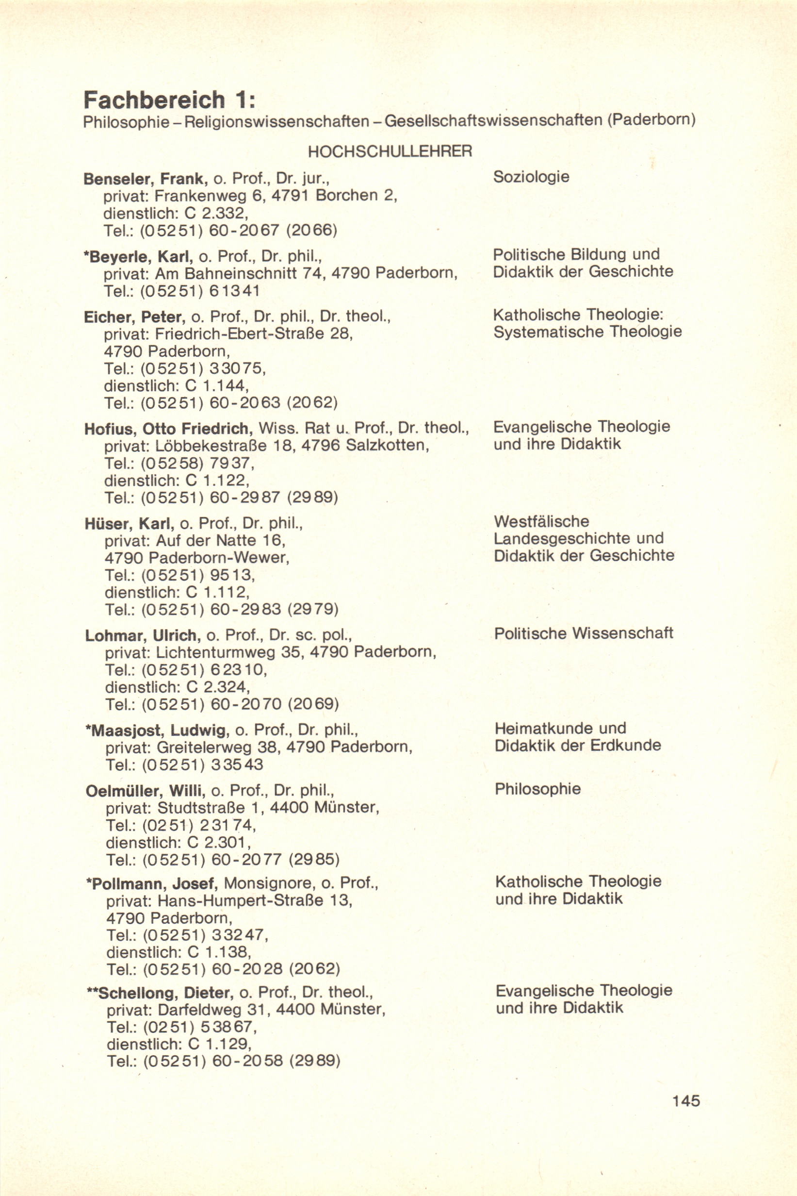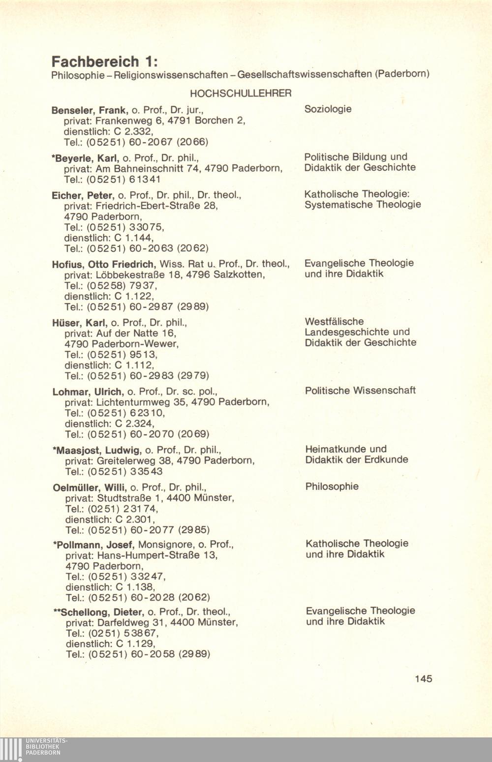 Personal- und Vorlesungsverzeichnis für die Gesamthochschule Paderborn