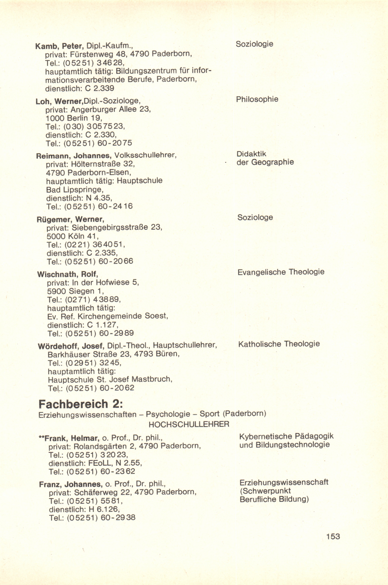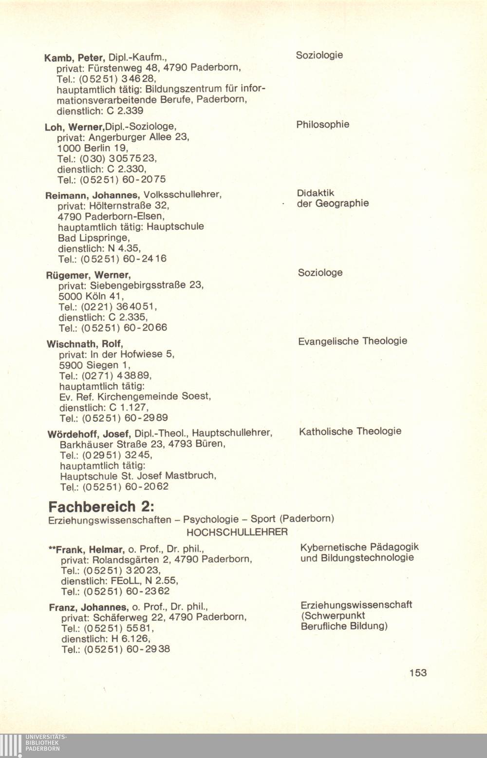 Personal- und Vorlesungsverzeichnis für die Gesamthochschule Paderborn