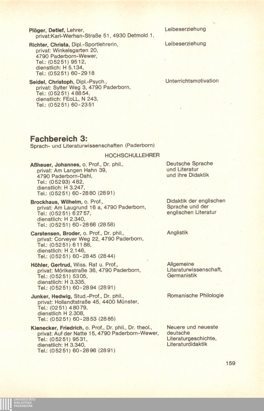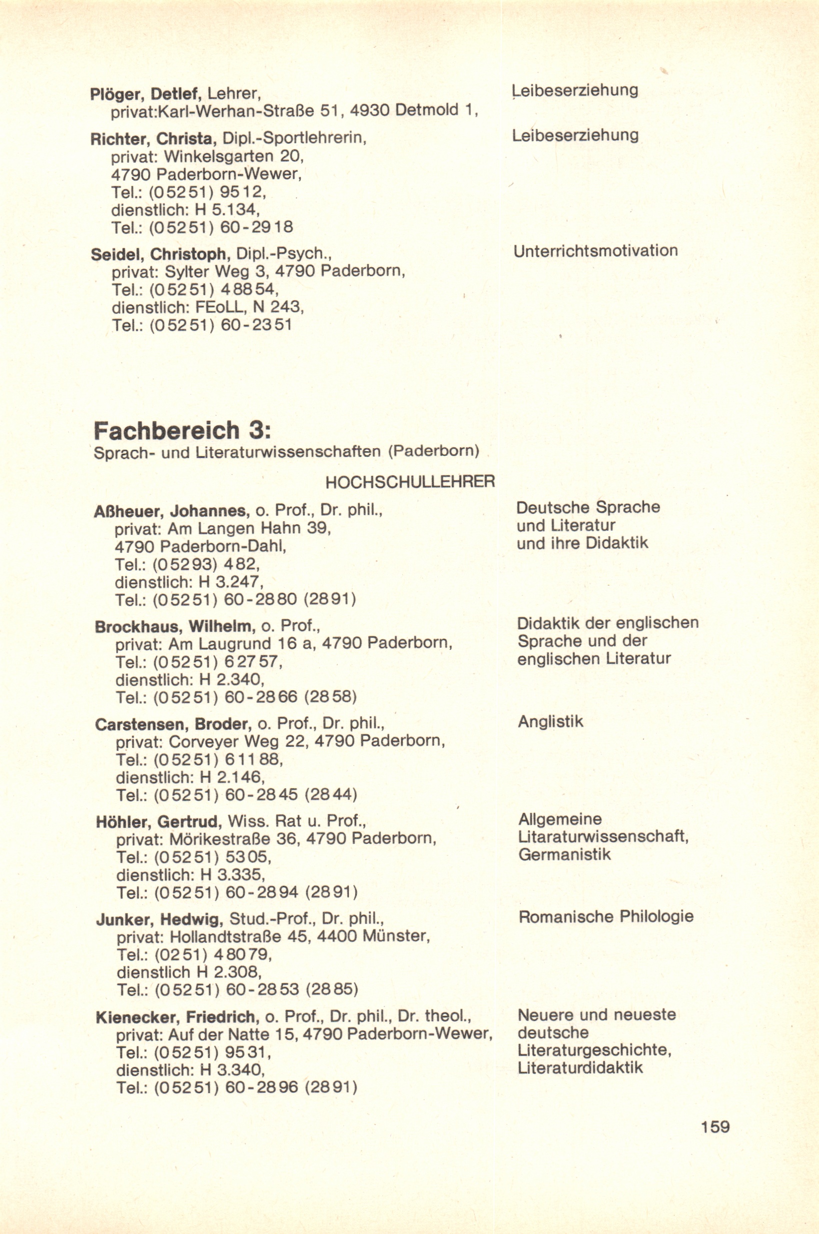 Personal- und Vorlesungsverzeichnis für die Gesamthochschule Paderborn