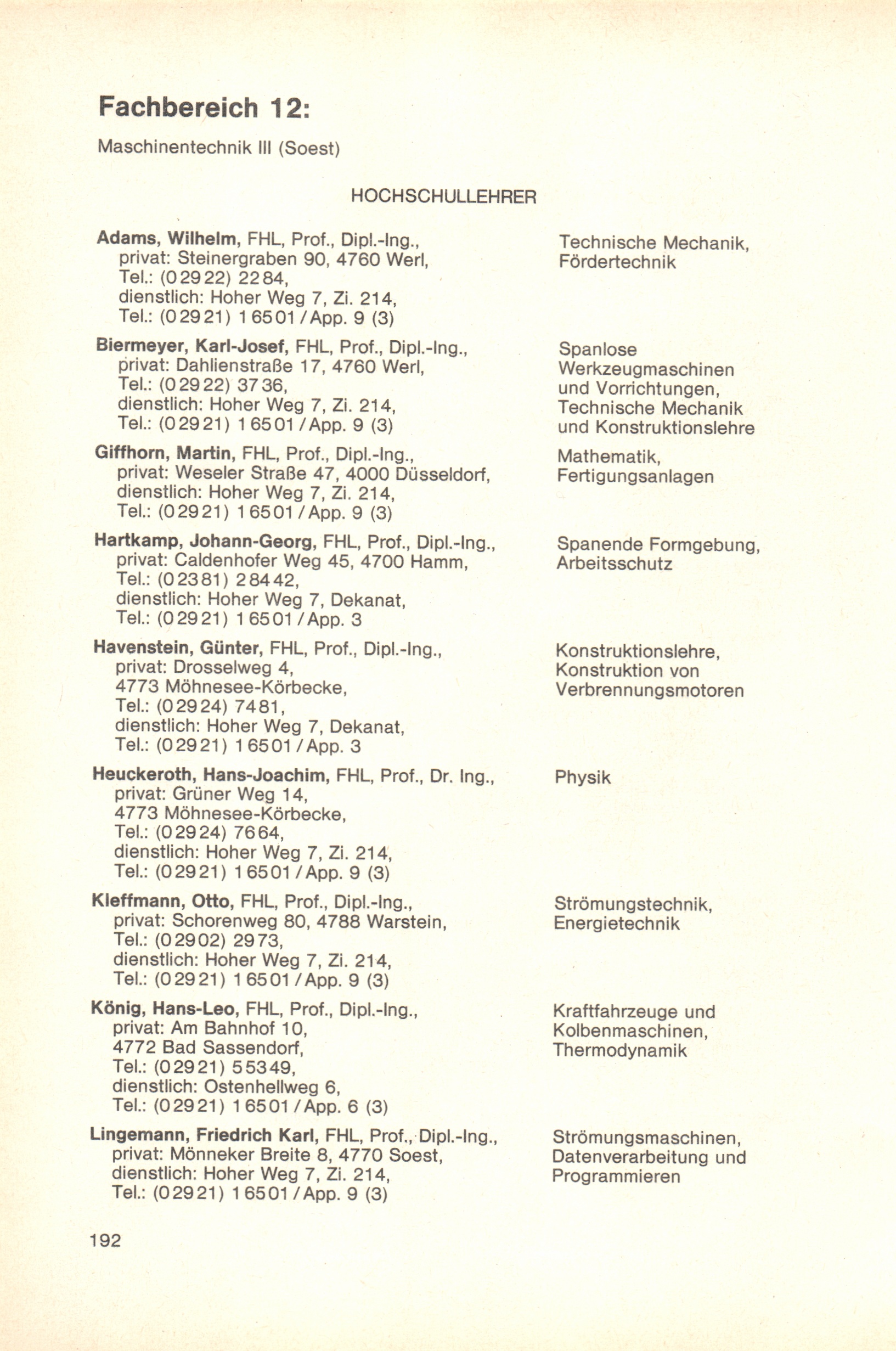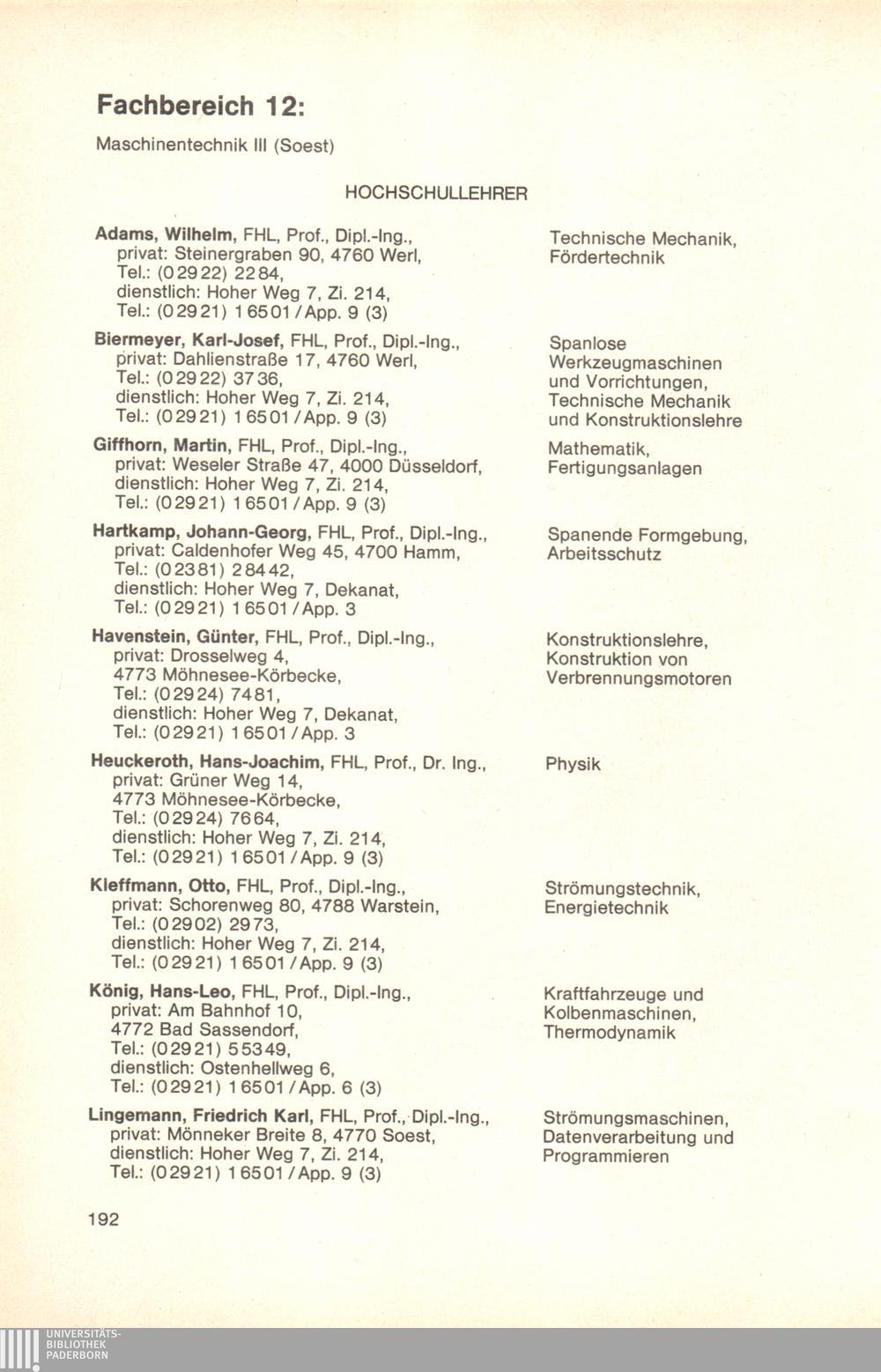 Personal- und Vorlesungsverzeichnis für die Gesamthochschule Paderborn