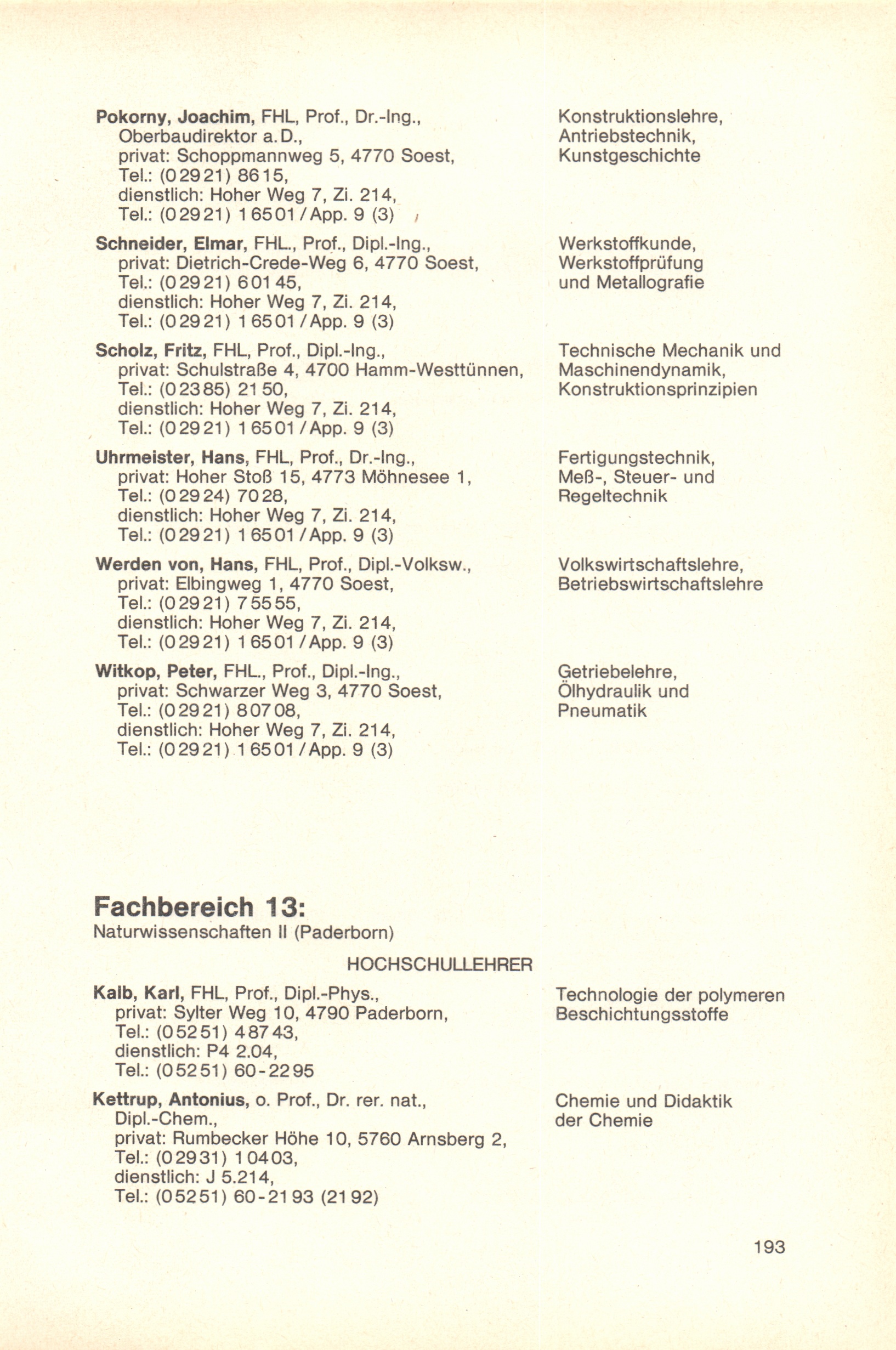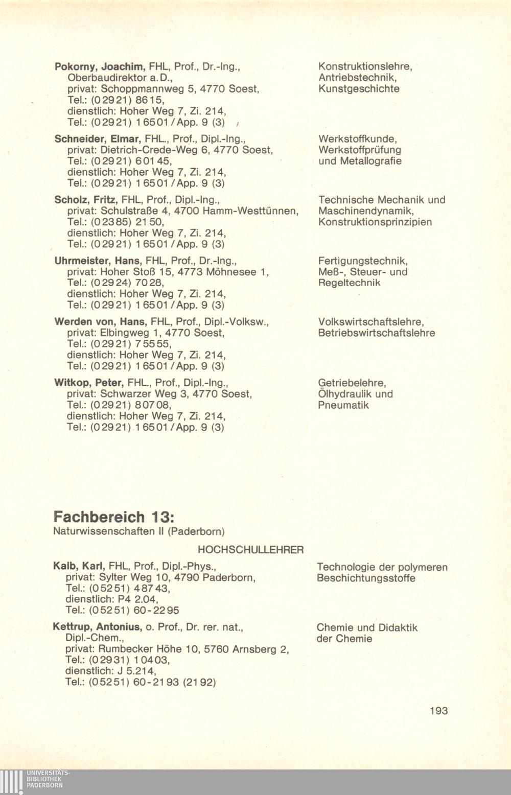 Personal- und Vorlesungsverzeichnis für die Gesamthochschule Paderborn