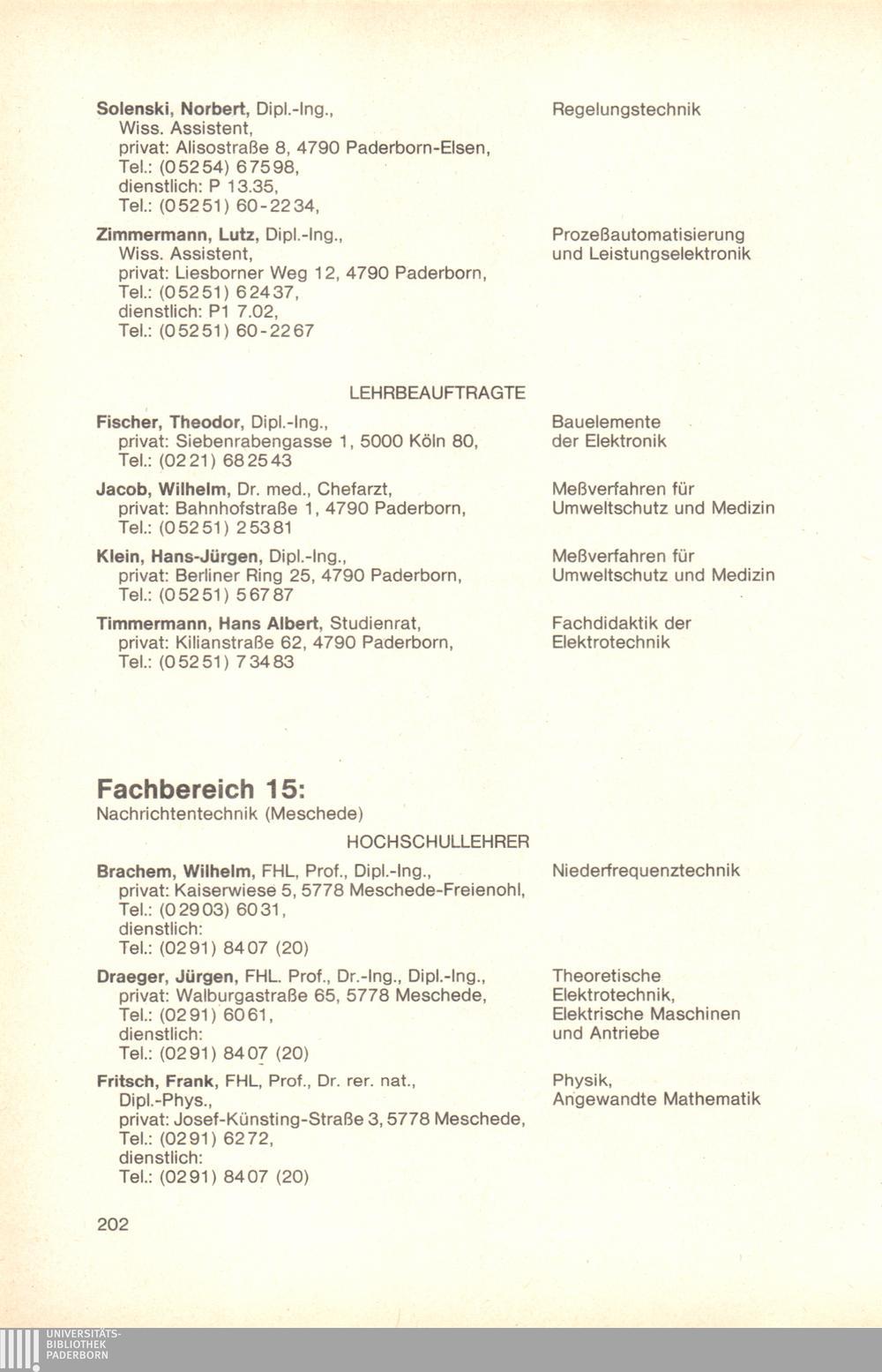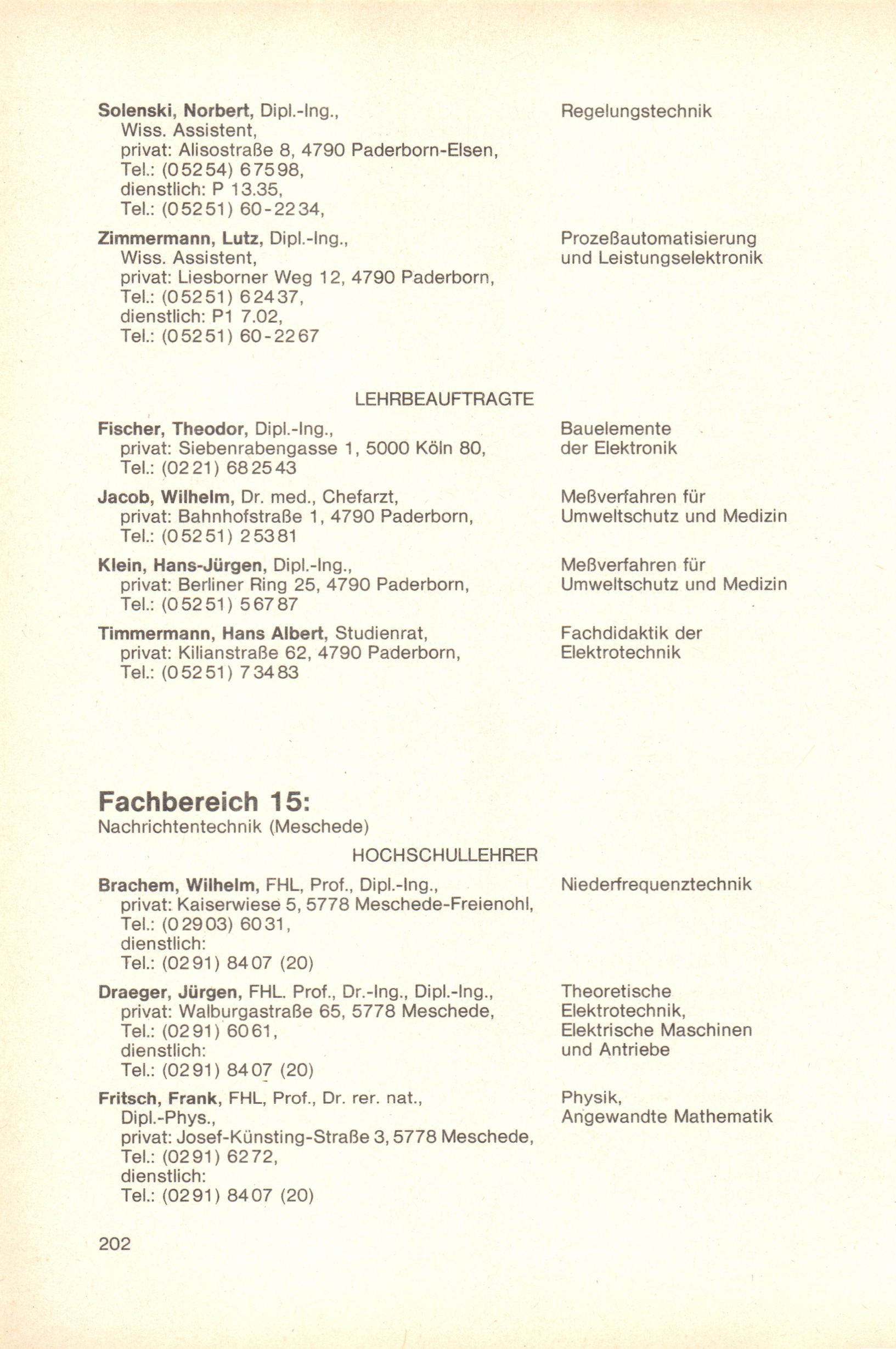 Personal- und Vorlesungsverzeichnis für die Gesamthochschule Paderborn