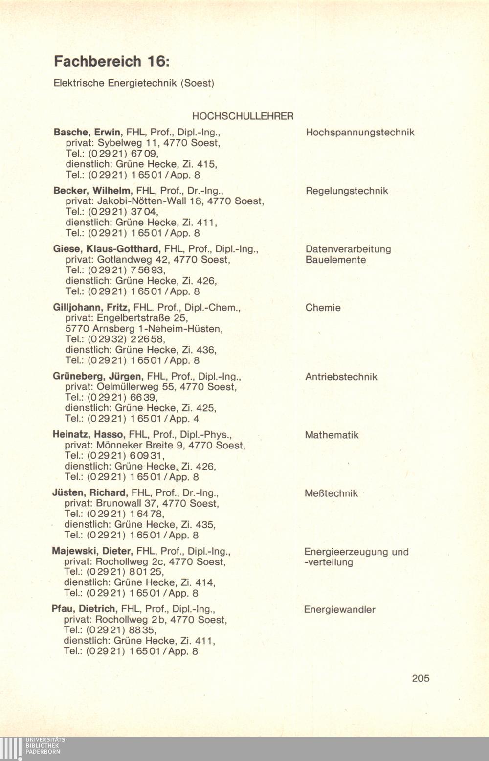 Personal- und Vorlesungsverzeichnis für die Gesamthochschule Paderborn