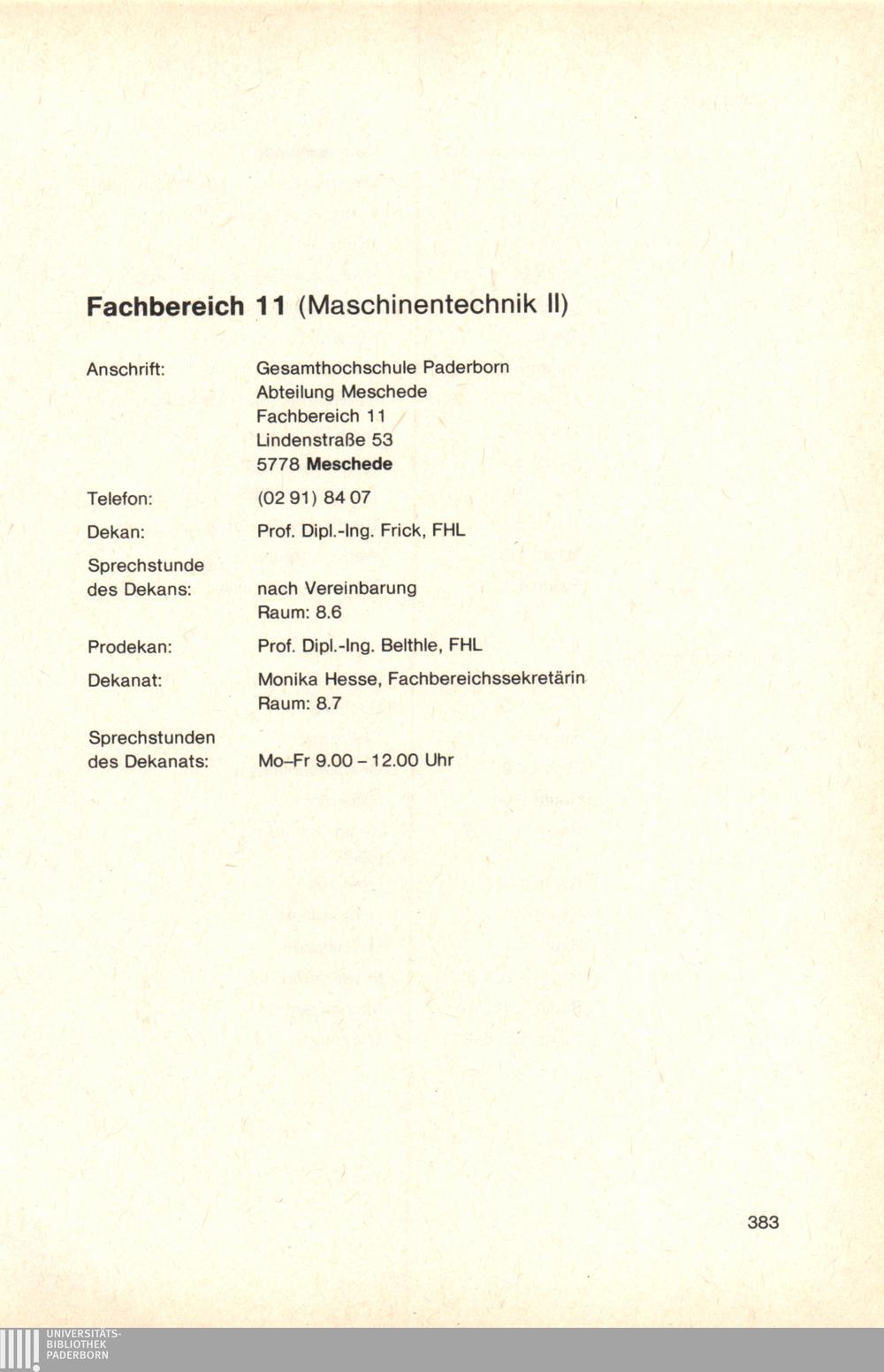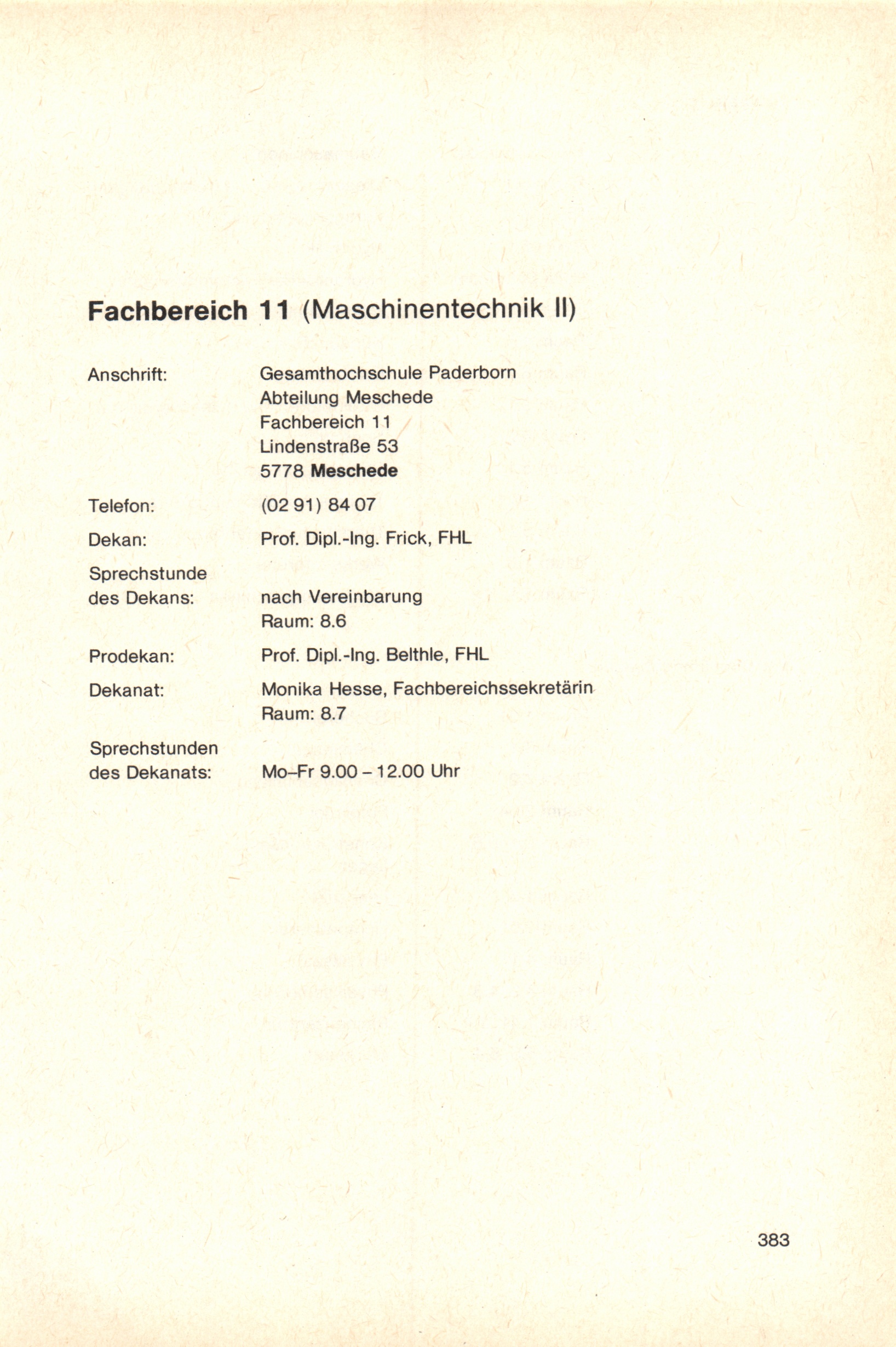 Personal- und Vorlesungsverzeichnis für die Gesamthochschule Paderborn