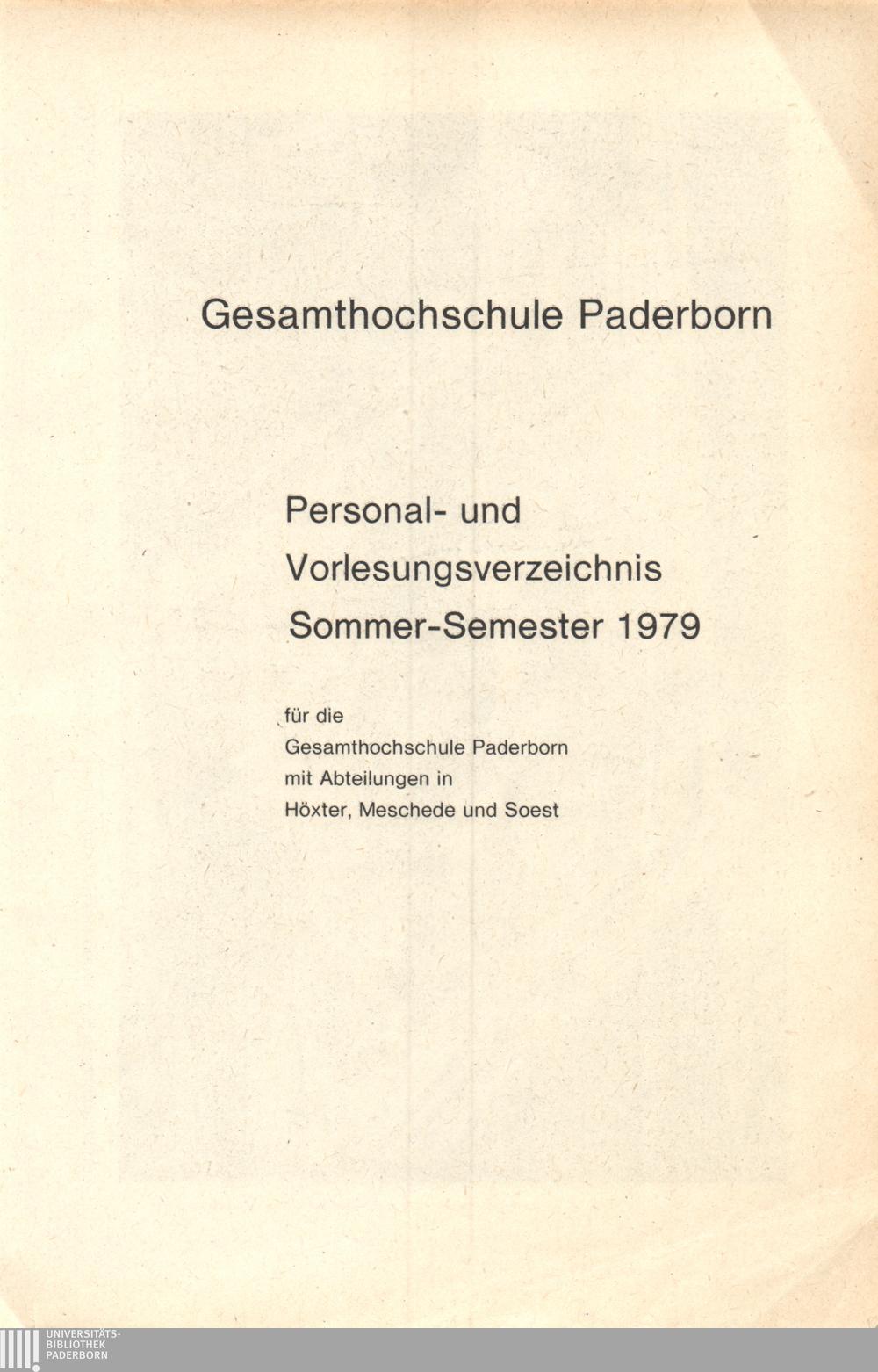 Personal- und Vorlesungsverzeichnis für die Gesamthochschule Paderborn
