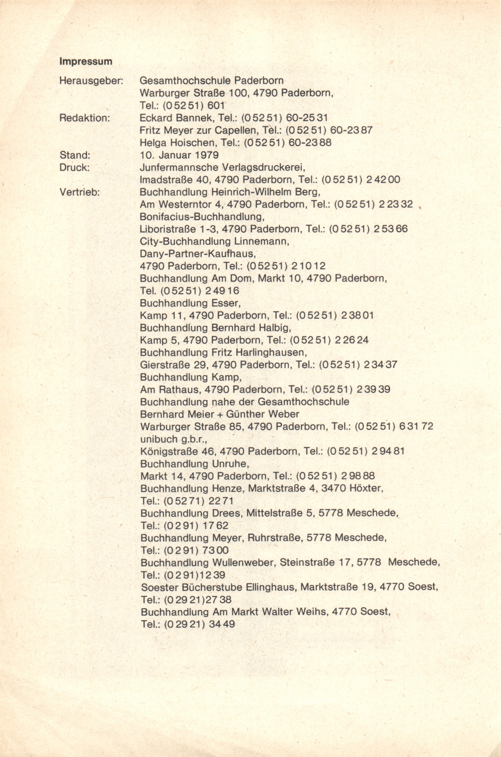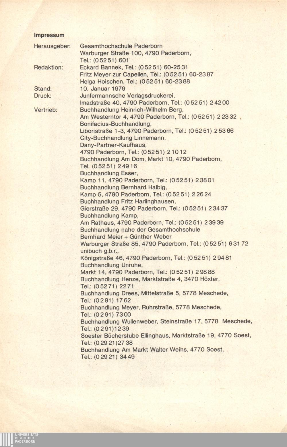 Personal- und Vorlesungsverzeichnis für die Gesamthochschule Paderborn