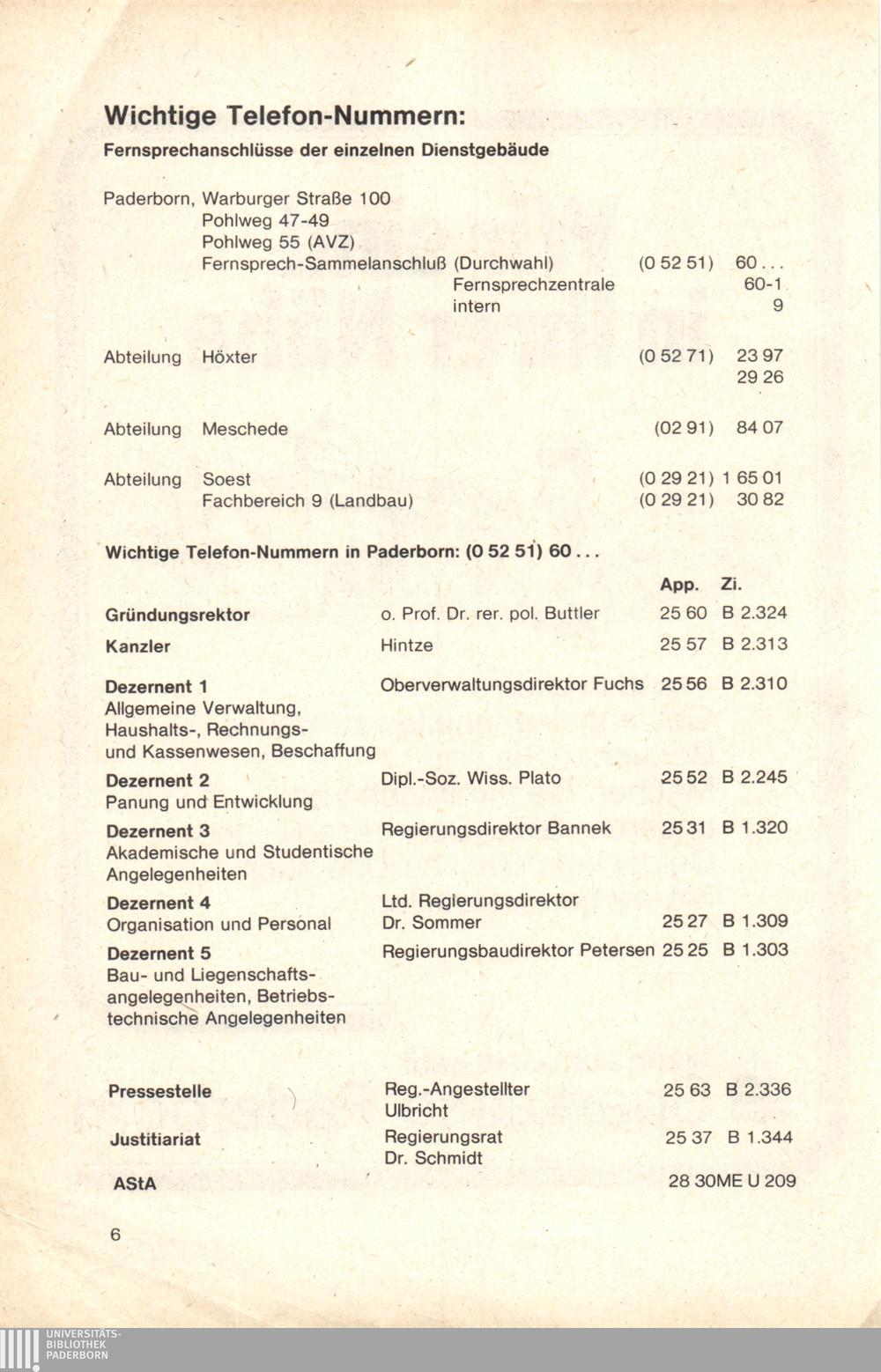 Personal- und Vorlesungsverzeichnis für die Gesamthochschule Paderborn