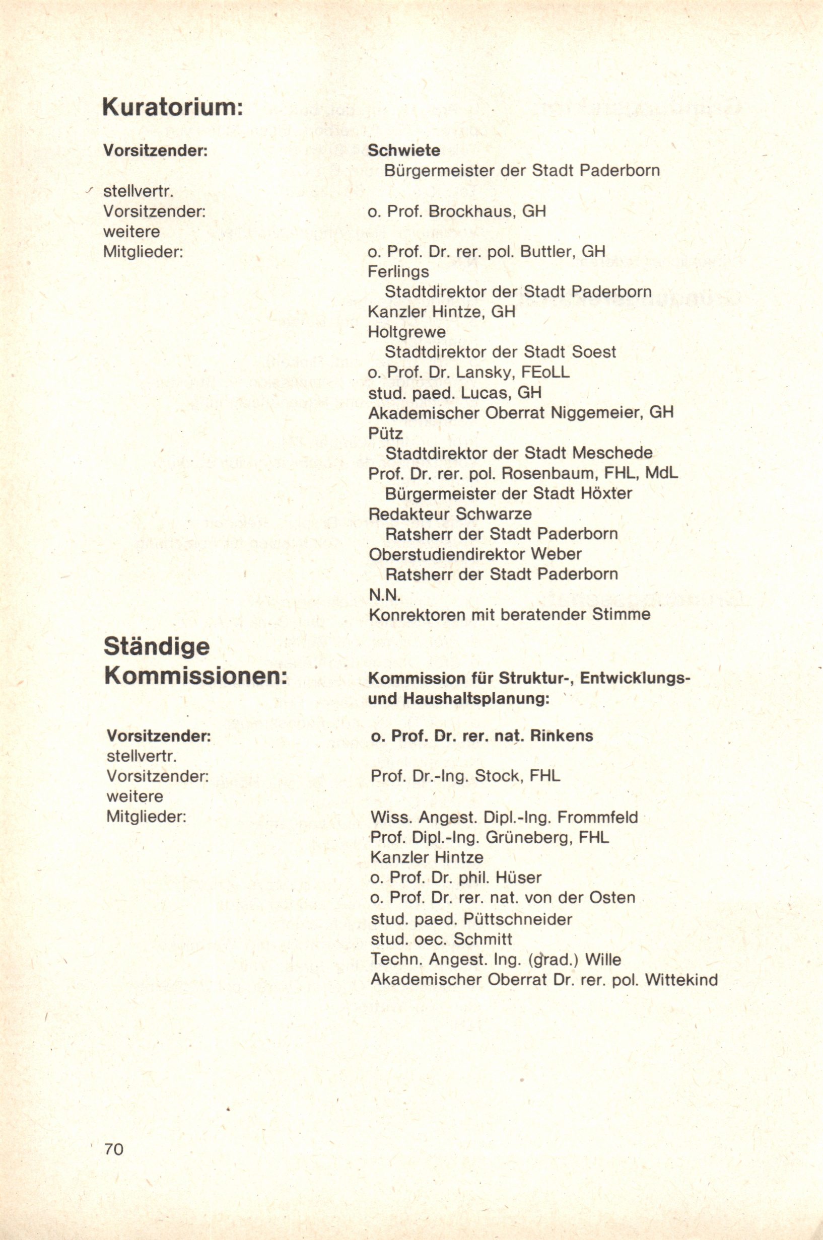 Personal- und Vorlesungsverzeichnis für die Gesamthochschule Paderborn