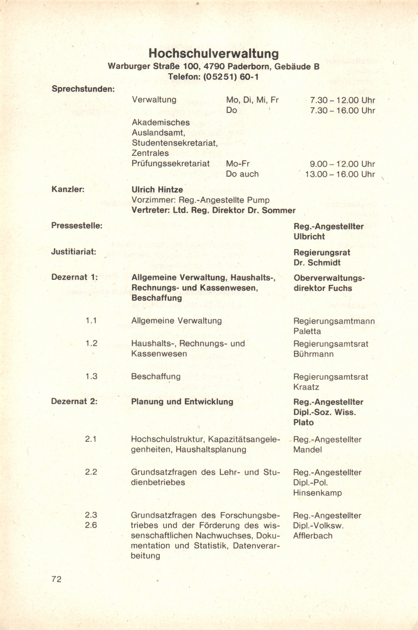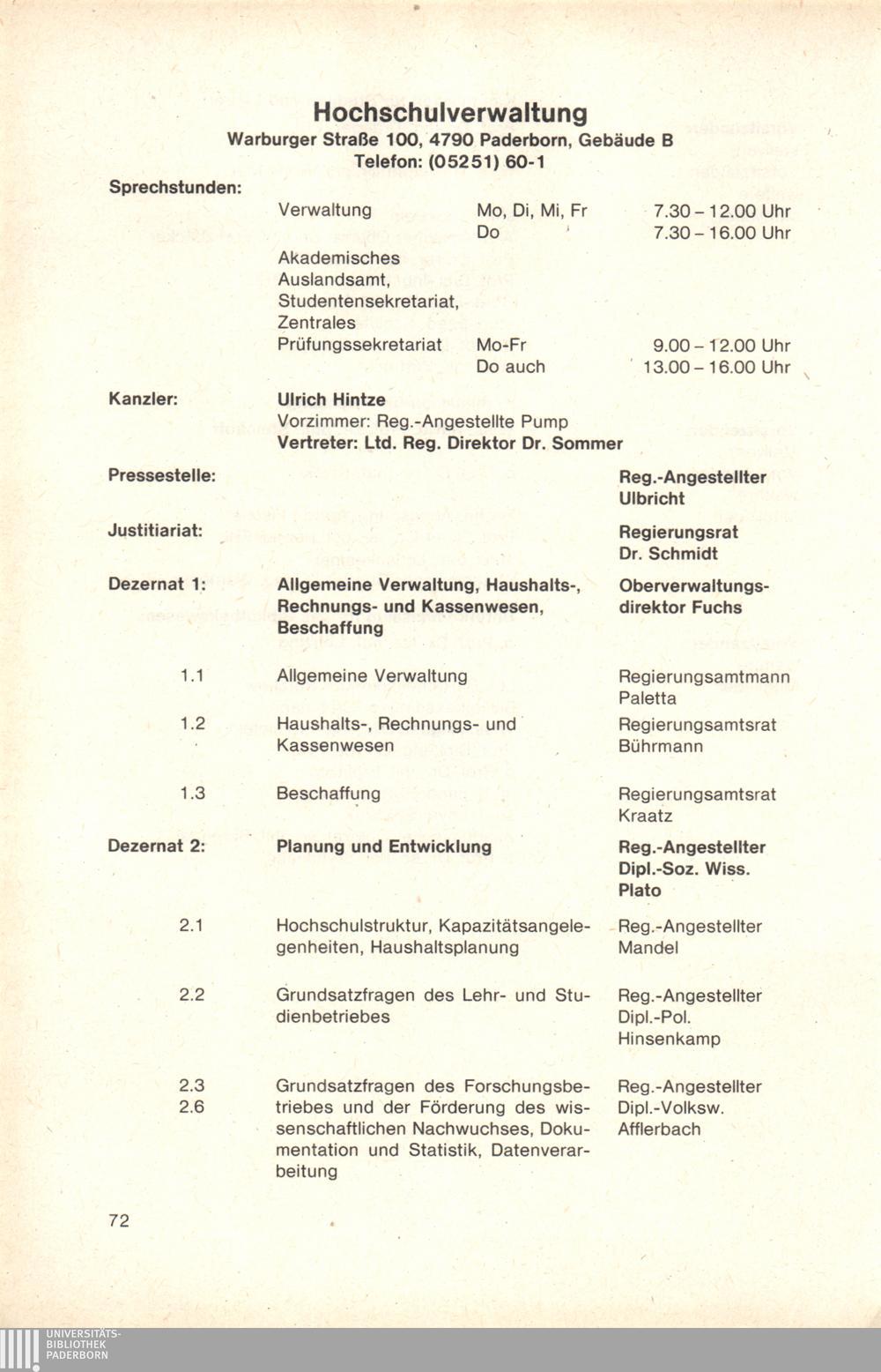 Personal- und Vorlesungsverzeichnis für die Gesamthochschule Paderborn