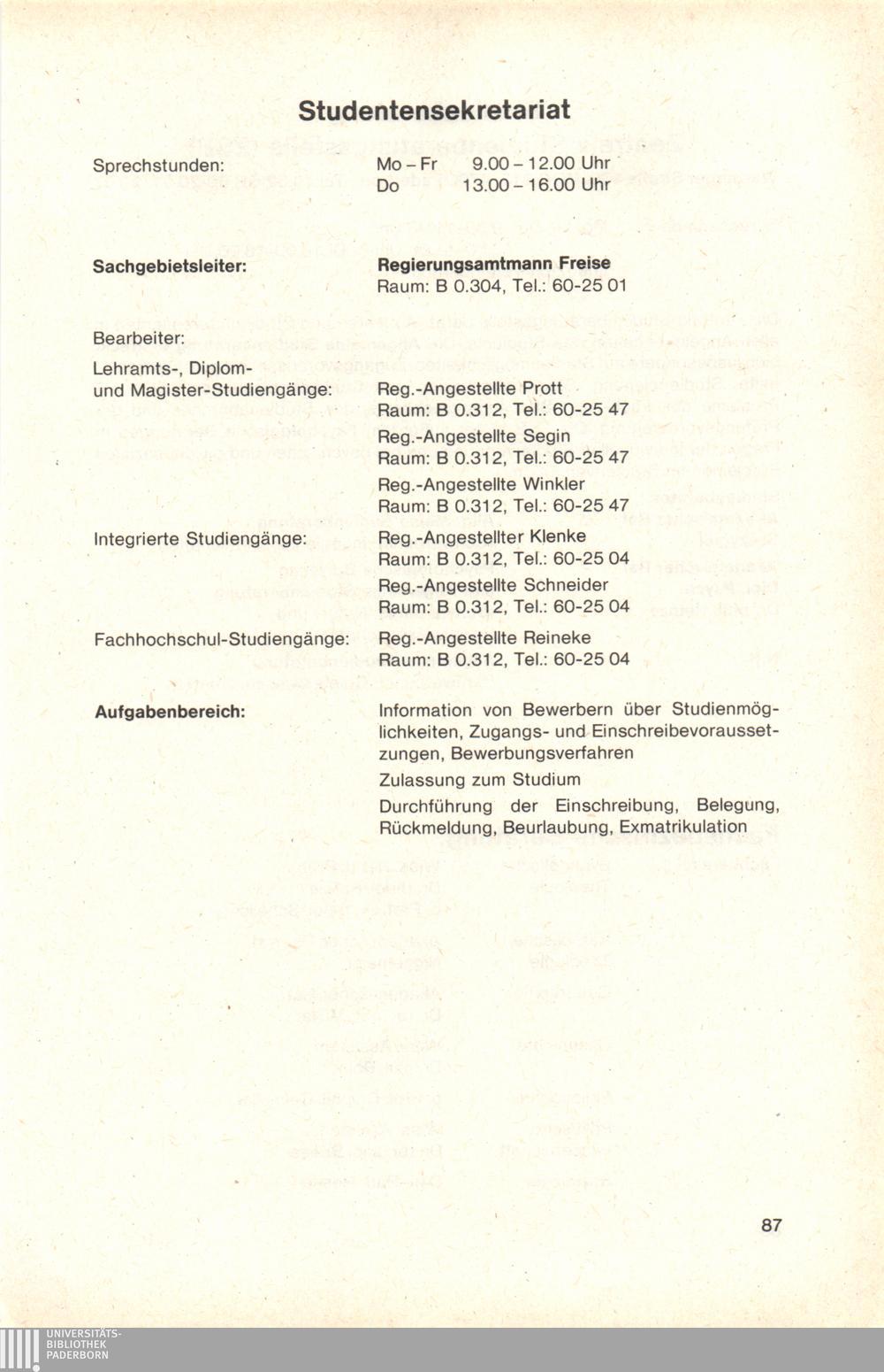 Personal- und Vorlesungsverzeichnis für die Gesamthochschule Paderborn