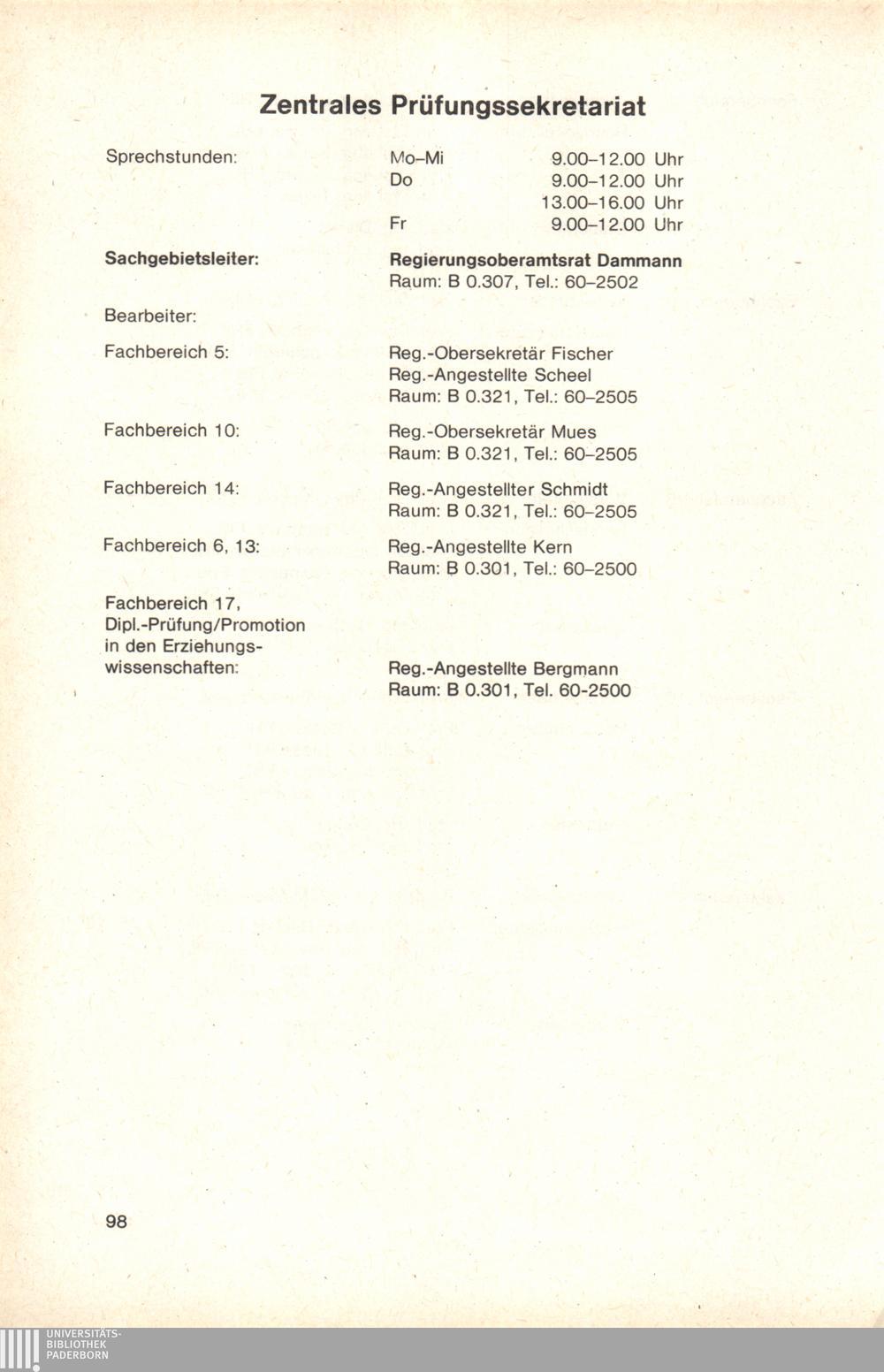 Personal- und Vorlesungsverzeichnis für die Gesamthochschule Paderborn