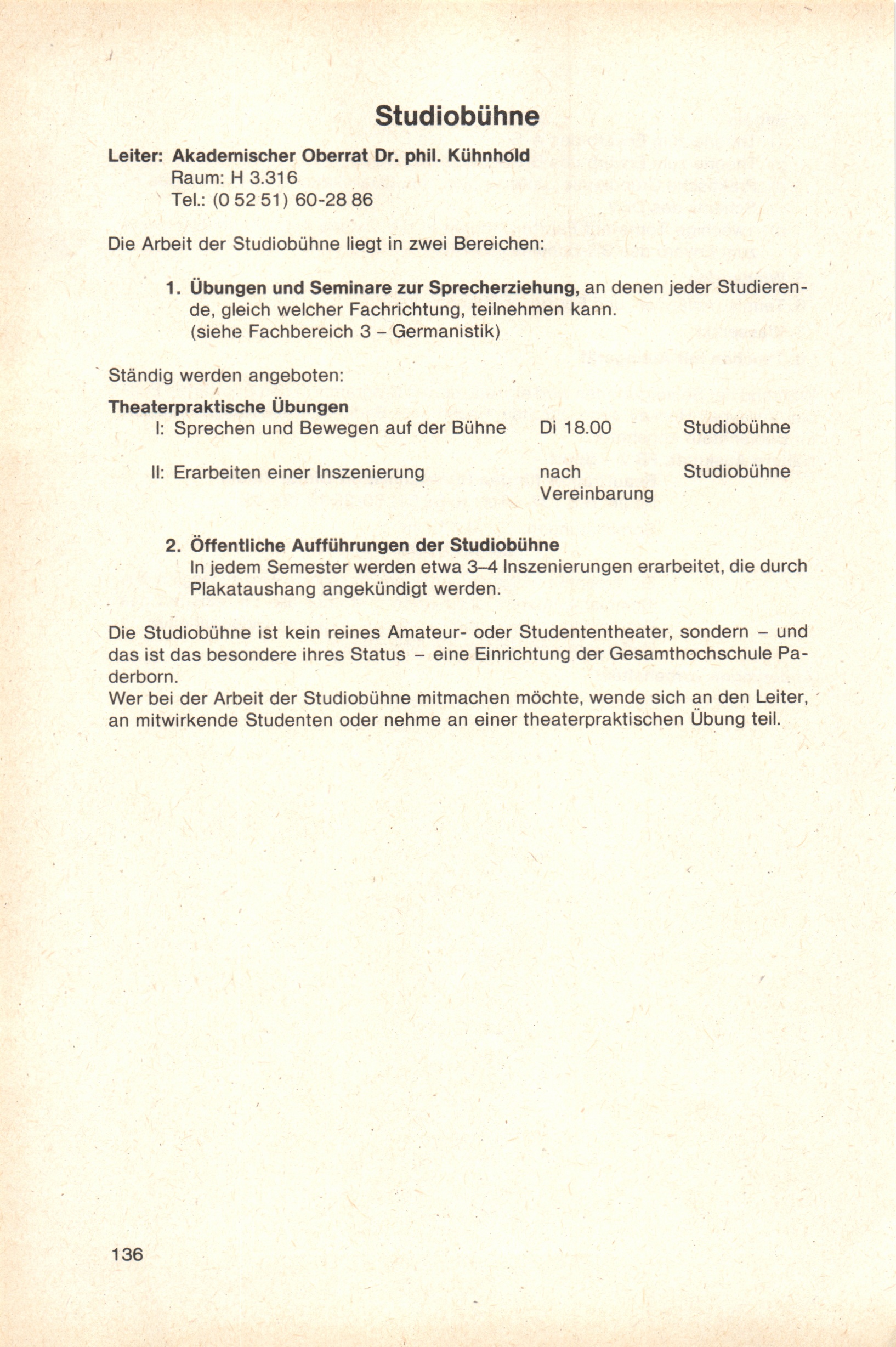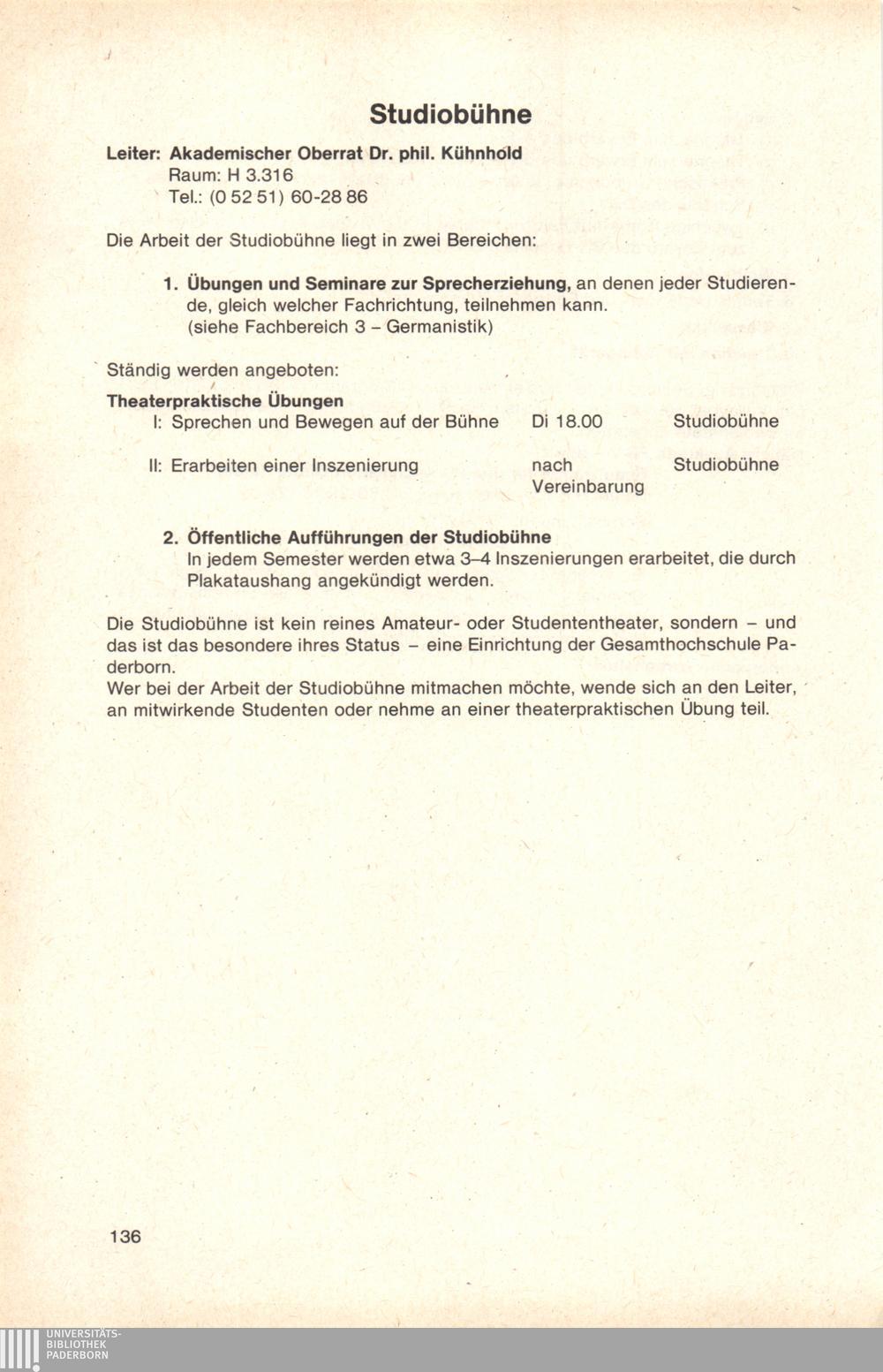 Personal- und Vorlesungsverzeichnis für die Gesamthochschule Paderborn