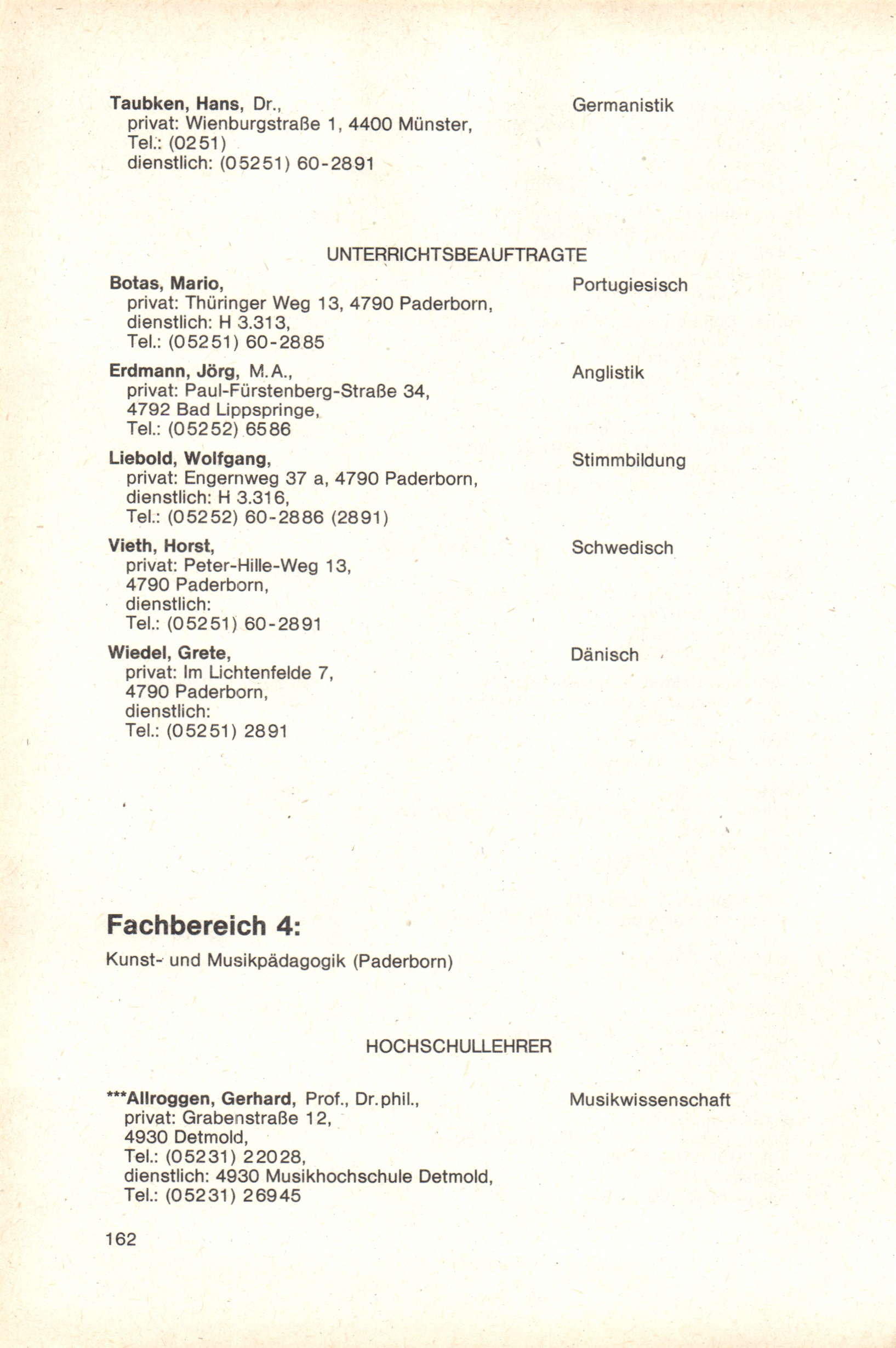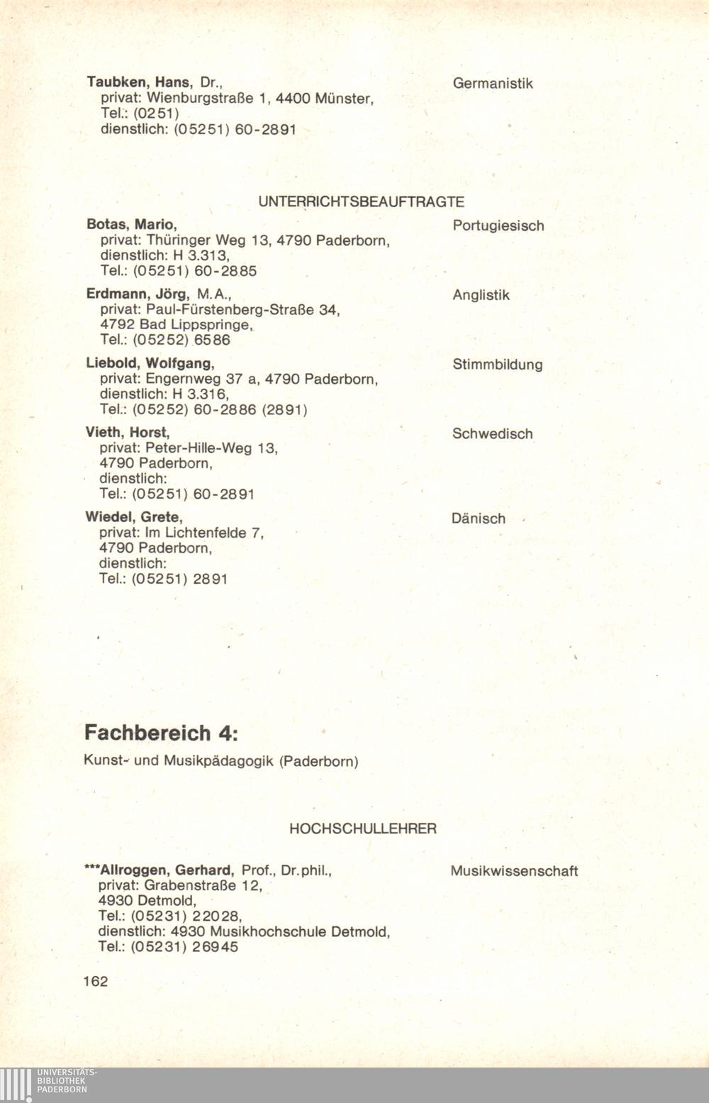 Personal- und Vorlesungsverzeichnis für die Gesamthochschule Paderborn