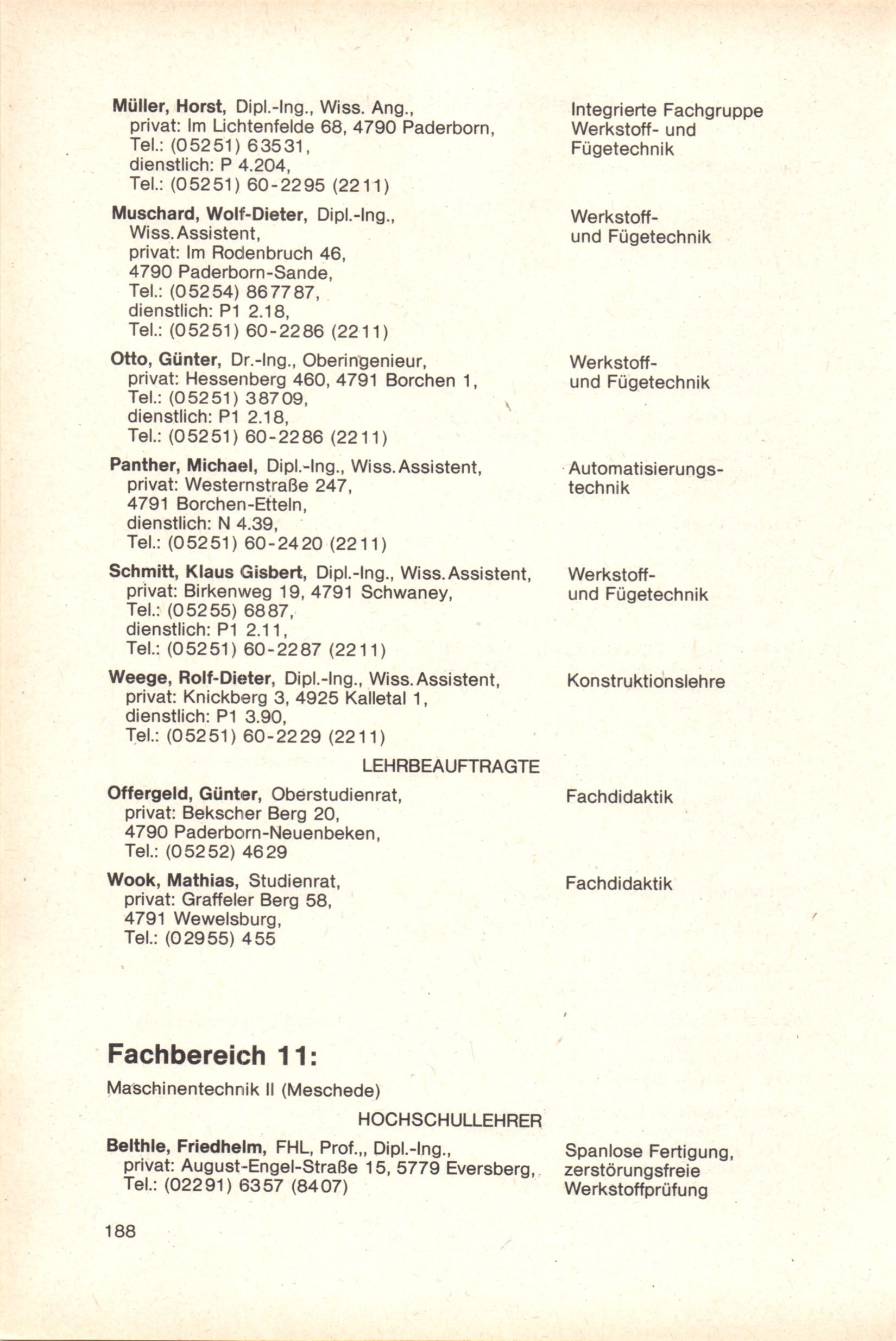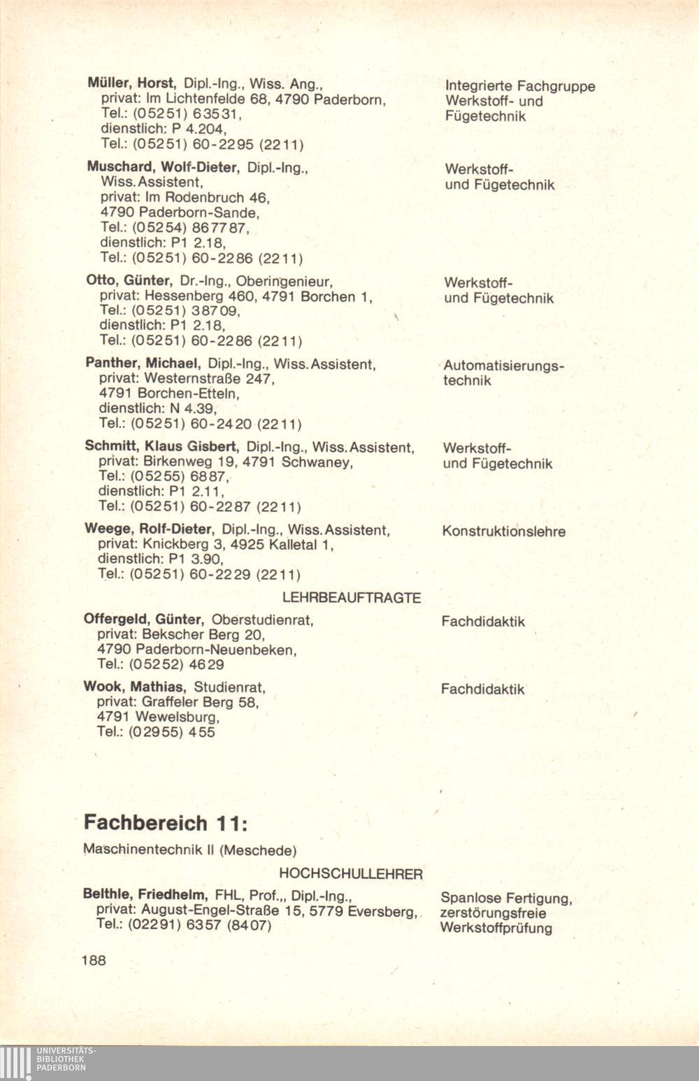 Personal- und Vorlesungsverzeichnis für die Gesamthochschule Paderborn